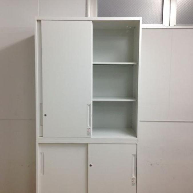 コクヨ製エディア 引き違い+引き違い書庫セット ホワイト シリンダー錠 カギ付き スライドの扉を導線を十分に確保- 名古屋千種店