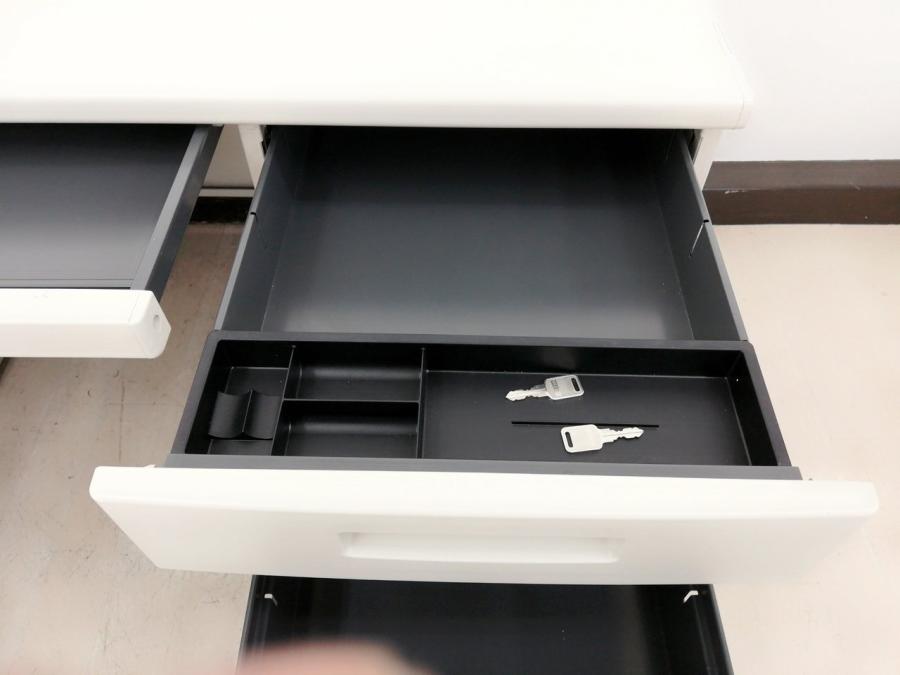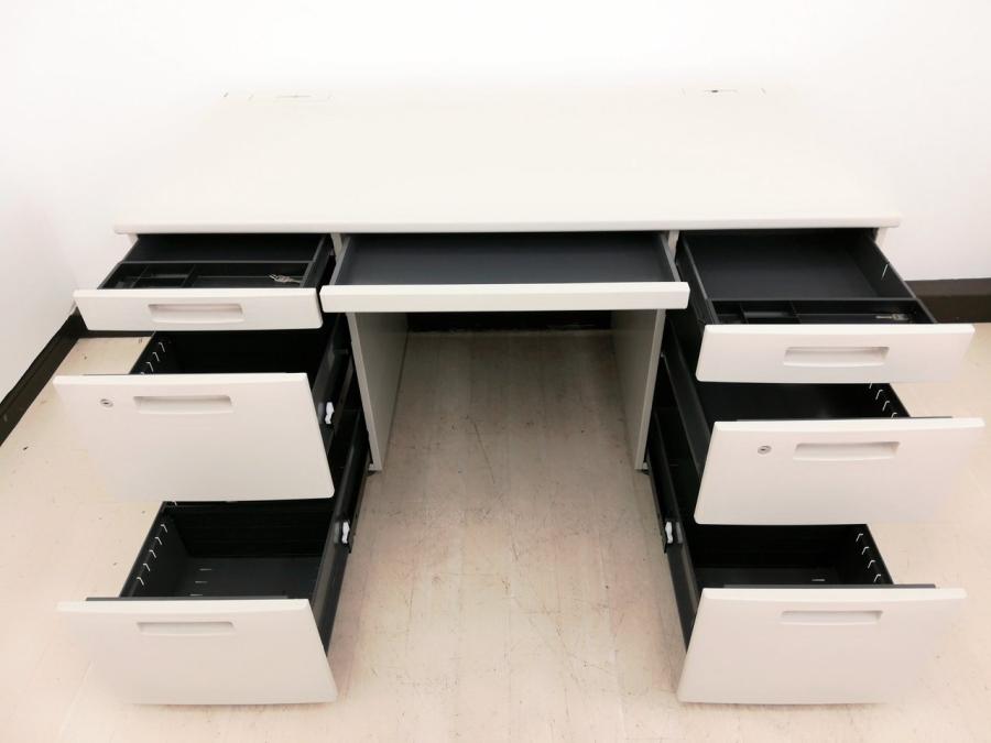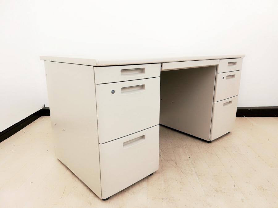 【入替セール】【横幅1400サイズ!】コクヨ/BS/両袖机/シリンダー錠/ニューグレー■上長様用や事務デスクにおすすめ!【日焼け有】- 春日部・越谷店