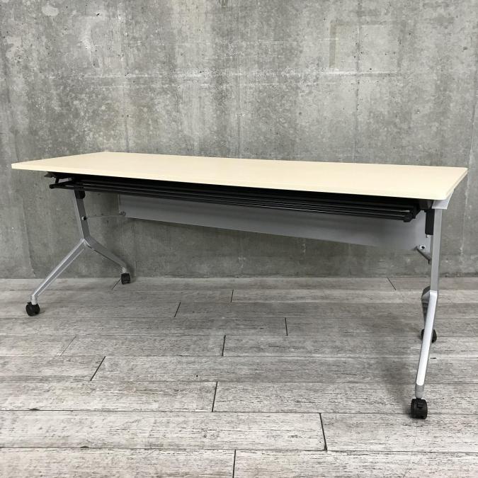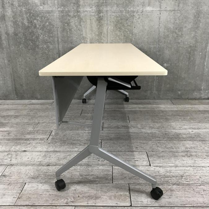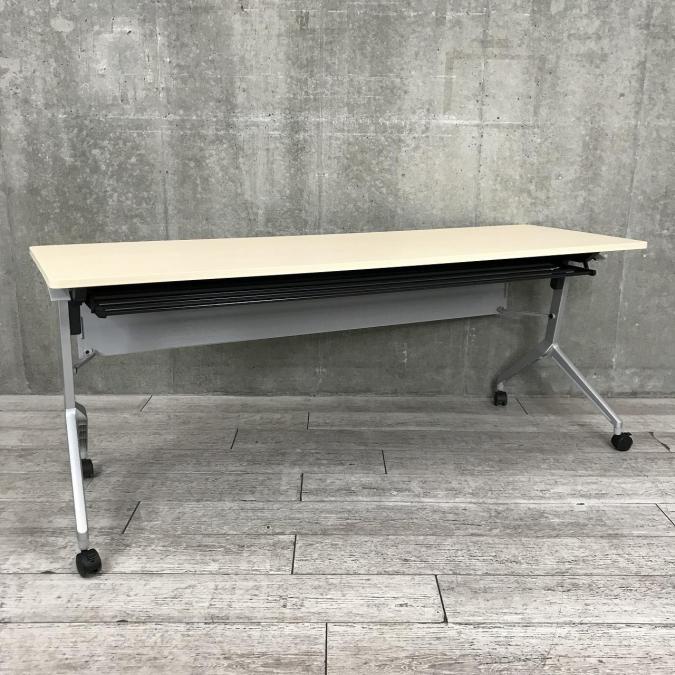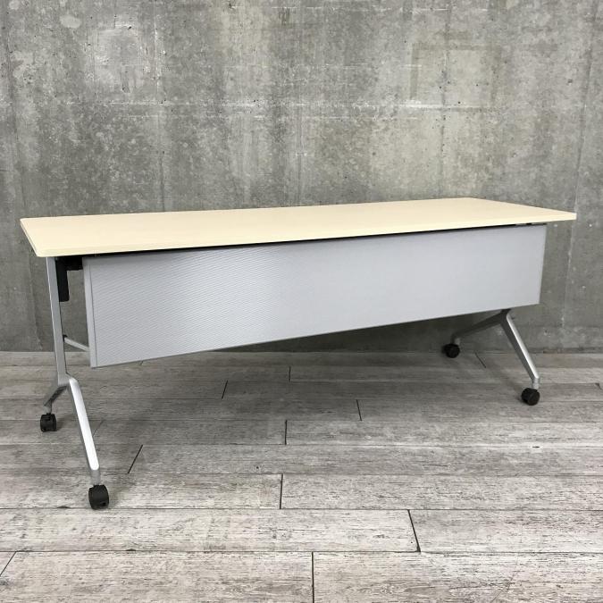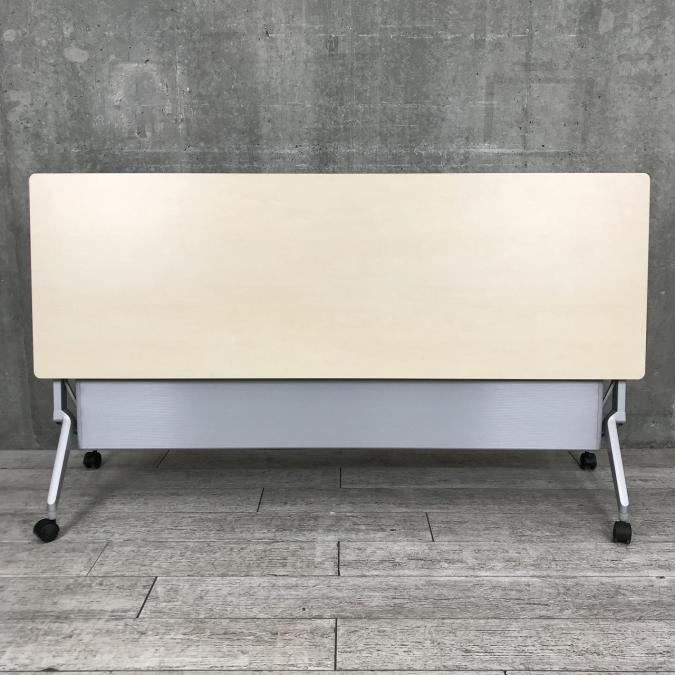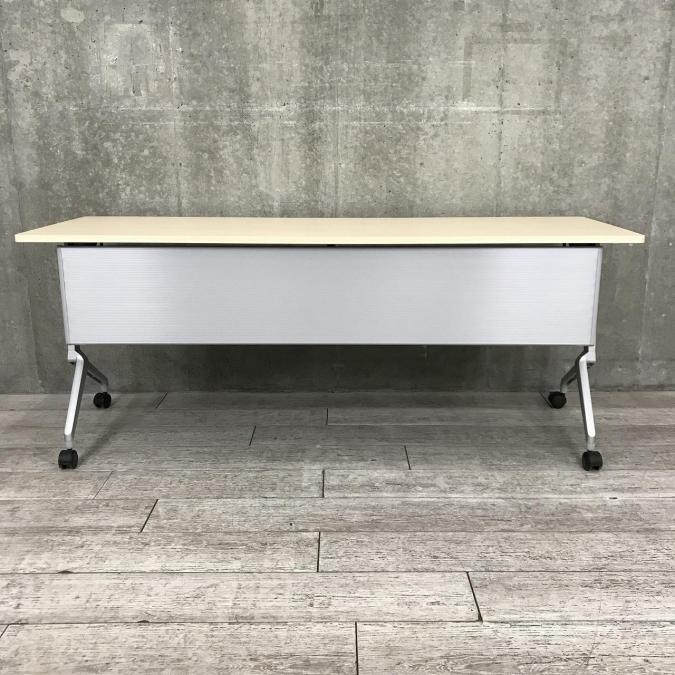 【2~3名様で使えるスタックテーブル入荷!キャスター付きで移動も楽々!】■KOKUYO(コクヨ)製 リーフライン サイドスタックテーブル ■幅1800×奥行600 ■幕板付き ■ナチュラル【天板跳ね上げ式でコンパクトに収納】- 池袋店