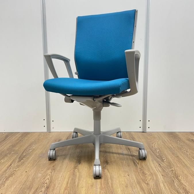 【オフィスの定番チェア!起業や入替に!】■okamura(オカムラ)製 ESCUDO/エスクードチェア 肘付ハイバック ■ダークブルー ■固定肘 ■ランバー付 【長時間のデスクワークもランバーが快適にサポート!】【入替セールにつき20%OFF!】