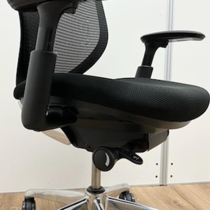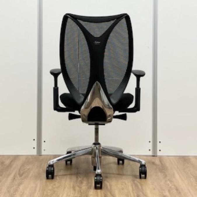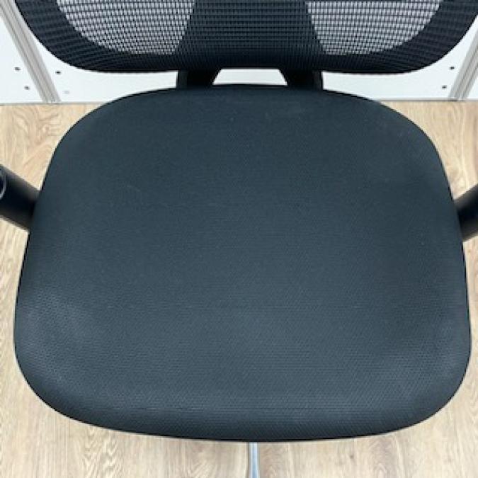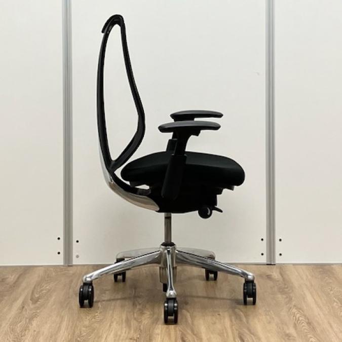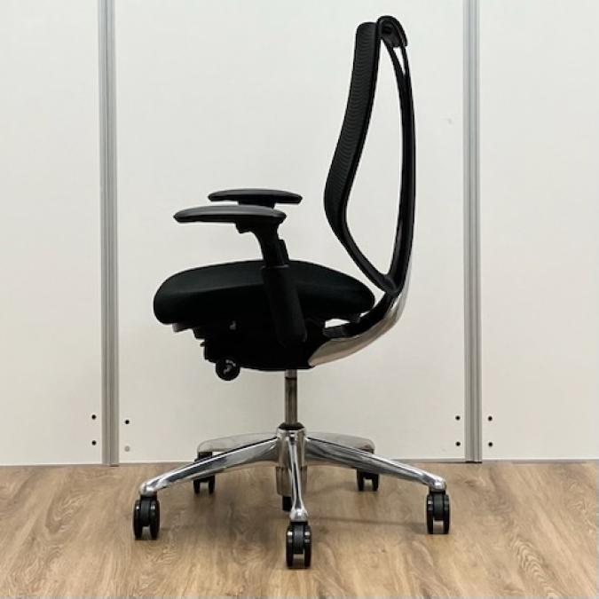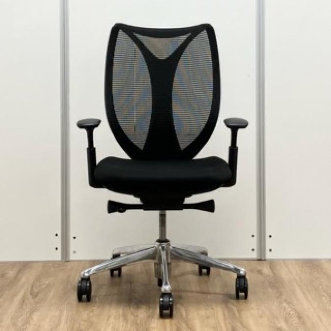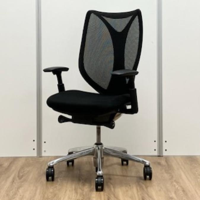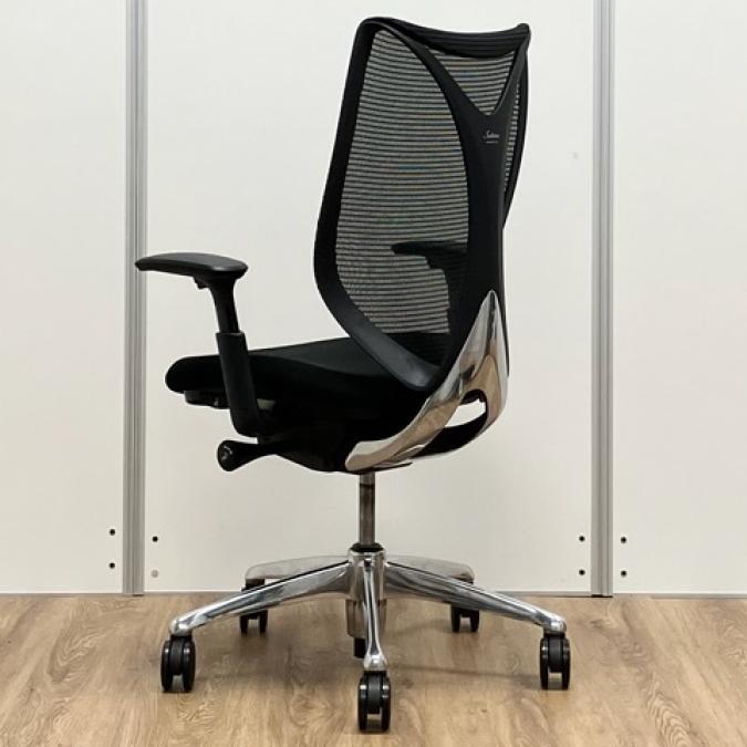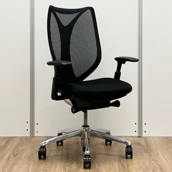 オカムラ製 サブリナシリーズ ブラックカラー 前傾チルト 流れるような美しいフォルム 最高級メッシュチェア アジャスタブル※可動肘 しなやかに、しっかりフィット 肘付きハイバックチェア!!- 京都東寺店