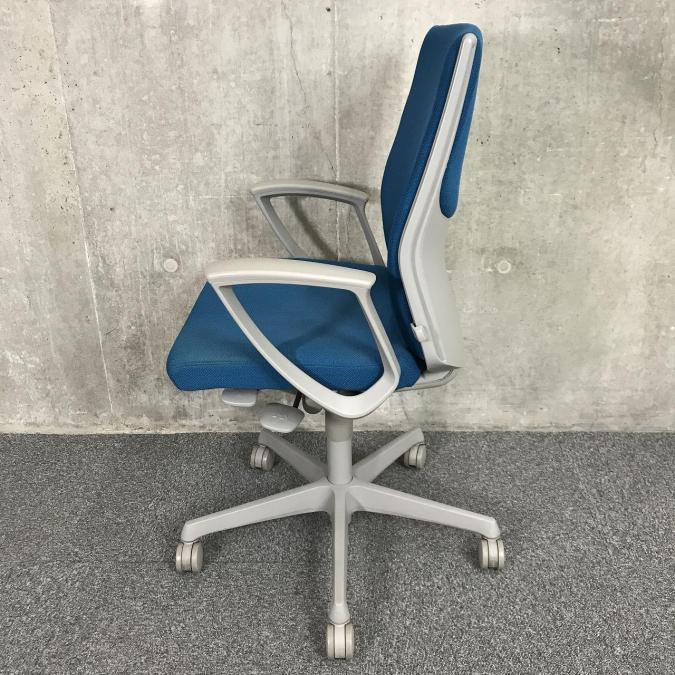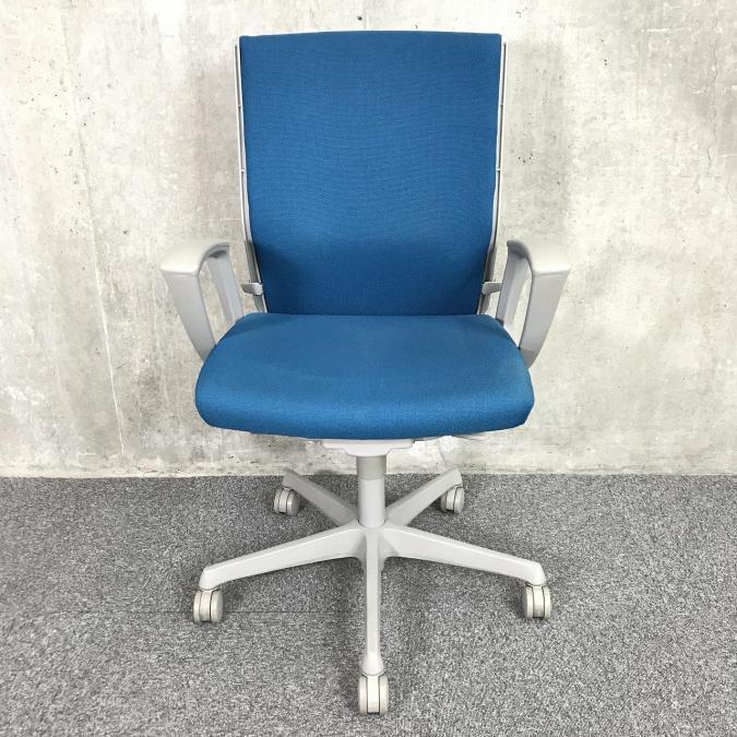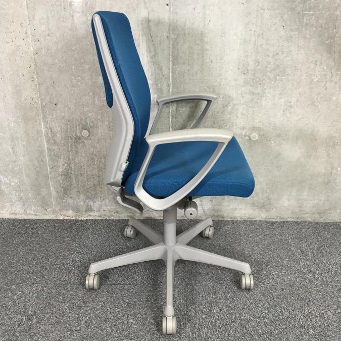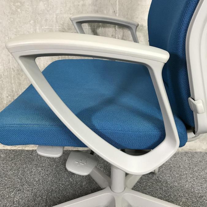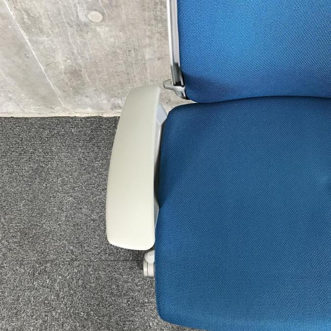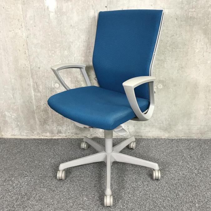 【入替価格】【スタンダードクラスで人気上位のワーキングチェア】爽やかでオフィスに取り入れやすい鮮やかなブルーカラー!■オカムラ製(okamura) エスクードチェア ハイバック 固定肘付き クッションタイプ ターコイズブルー- 春日部・越谷店