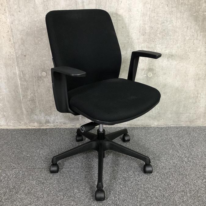 【在庫入れ替えセール!40%】【コスパの良いワーキングチェア!】■プラス製 カイルチェア ローバック 肘付き ブラック- 池袋店