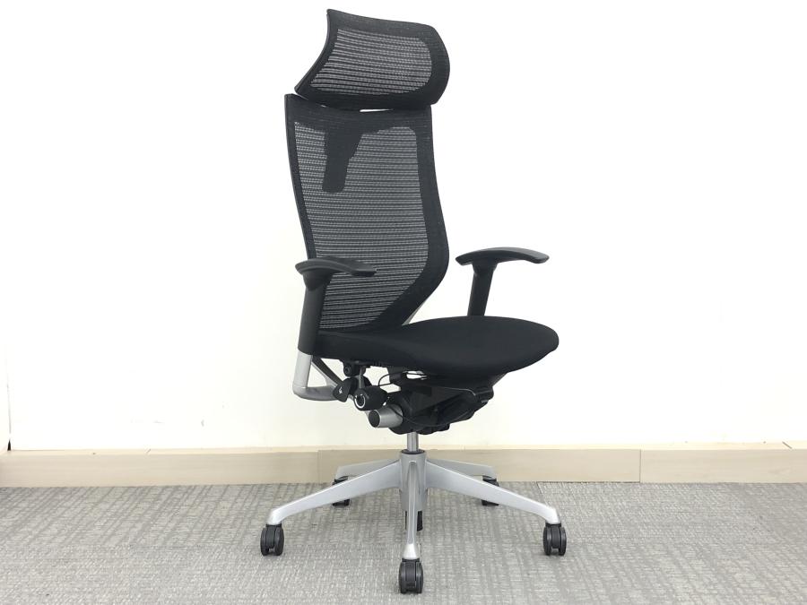 【ヘッドレスト付でワンランク上の座り心地!】■オカムラ製 バロンチェア 可動肘付 ブラック シルバーフレーム エクストラハイバックタイプが数量限定入荷!サーキュラーバリューCO2削減量の算出について