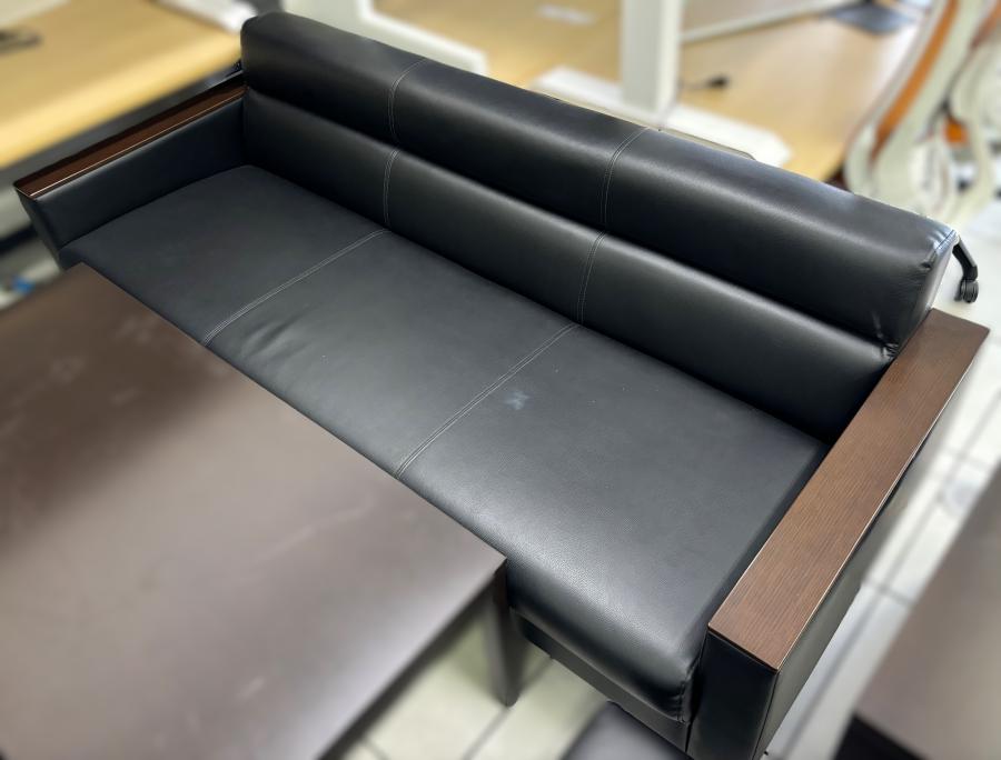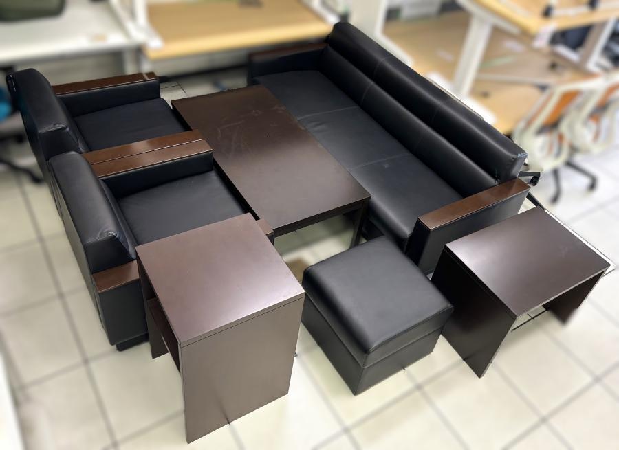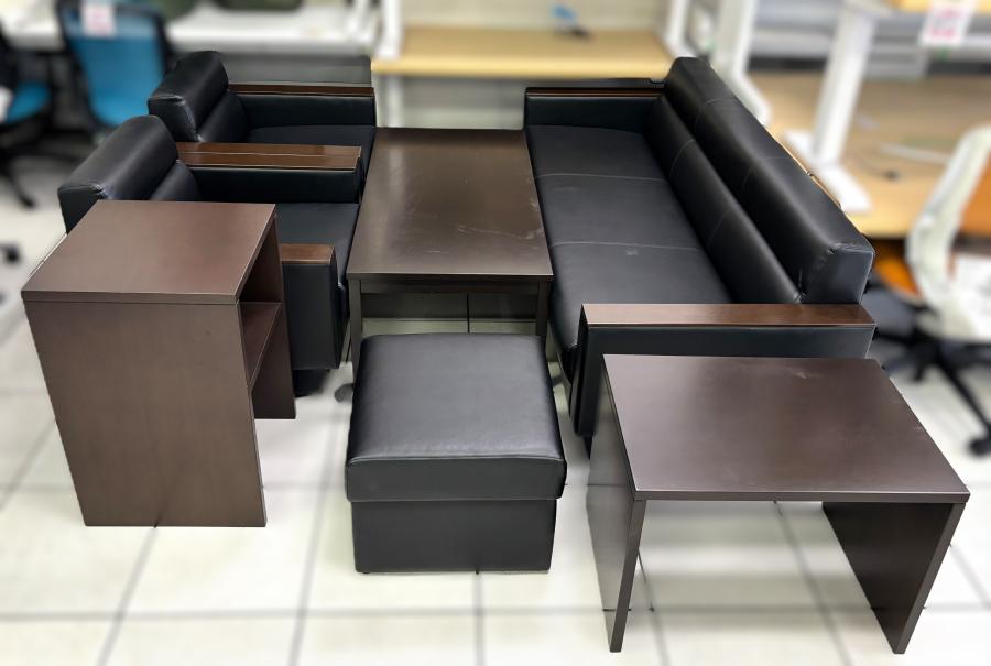【1点のみ!応接セットが入荷!】1人用ソファ 3人用ソファ 長テーブル 小テーブル 電話台 黒革- なんば日本橋店