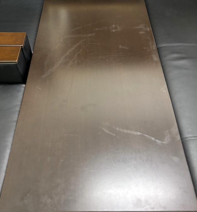 - あり黄ばみ・変色が広い範囲にうっすらある、または濃い黄ばみ・変色が一部ある。(例:三人用ソファ、二人用ソファ、一人用ソファの場合、背もたれ、肘かけ、座面等、 センターテーブルの場合、天板、脚にある。)
