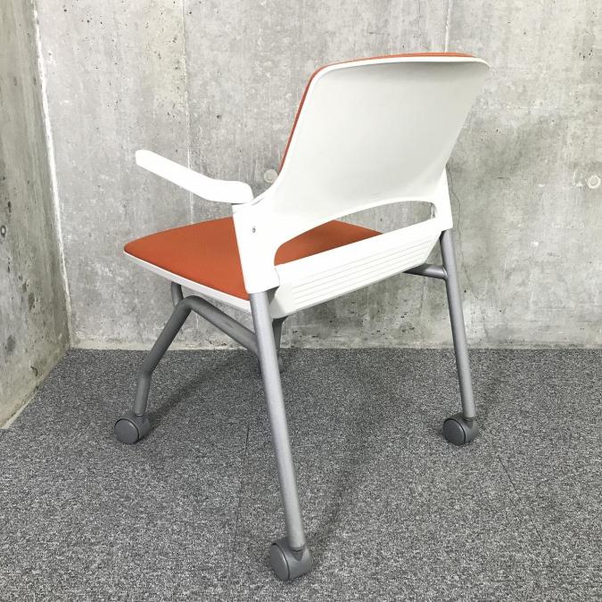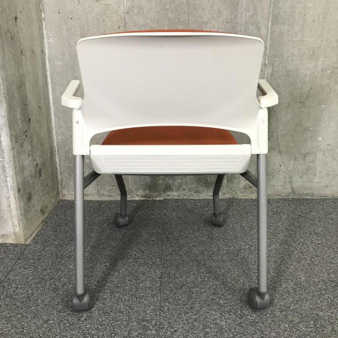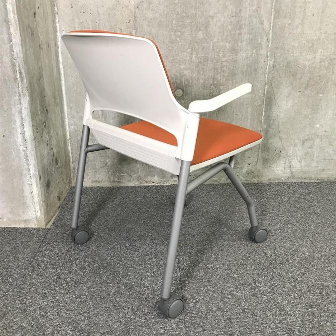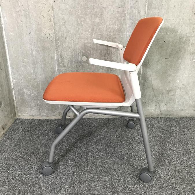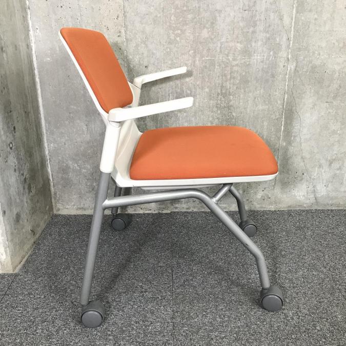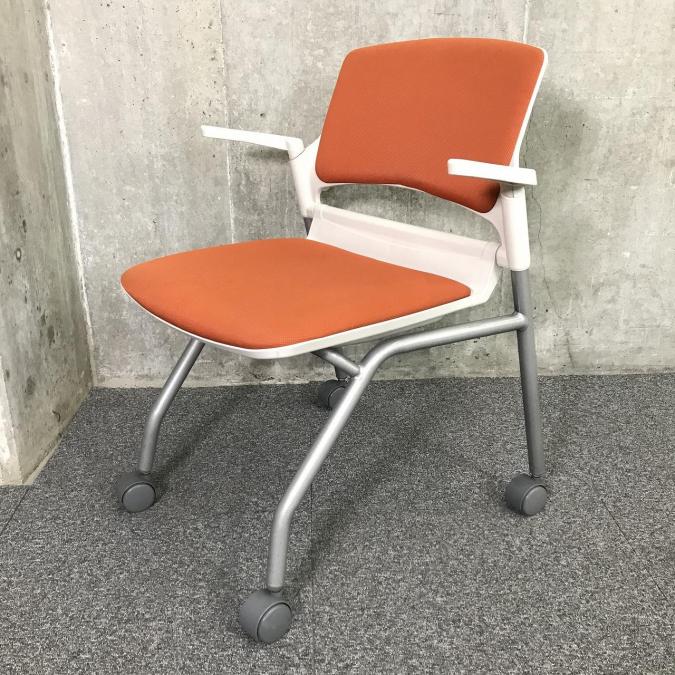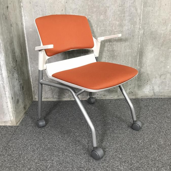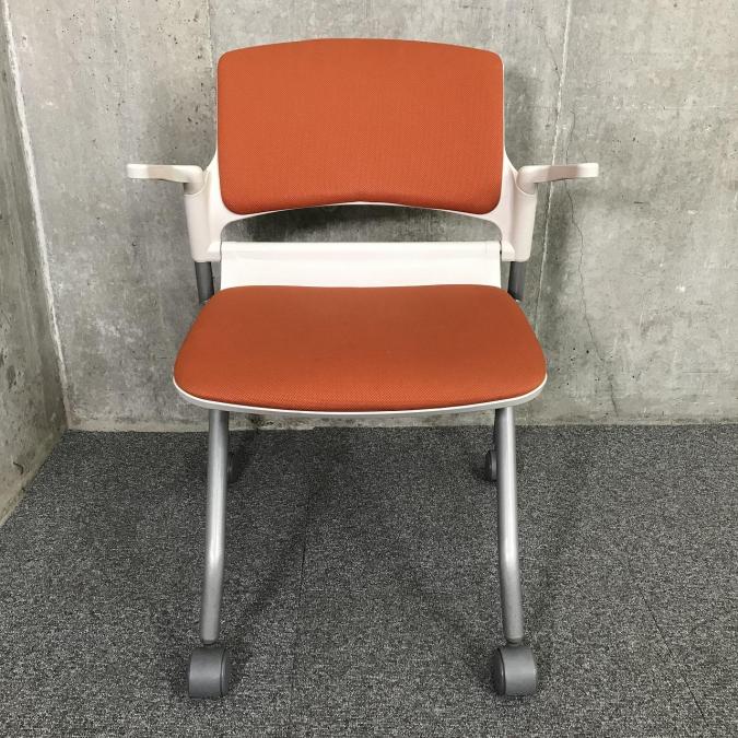 【関東倉庫在庫品】畳んで省スペースに収納できる!肘付きミーティングチェア■内田洋行(UCHIDA)MF-180 オレンジ ネスティング ミーティングチェア キャスター付き【社内使用欄:TMG】- 全店共通商品