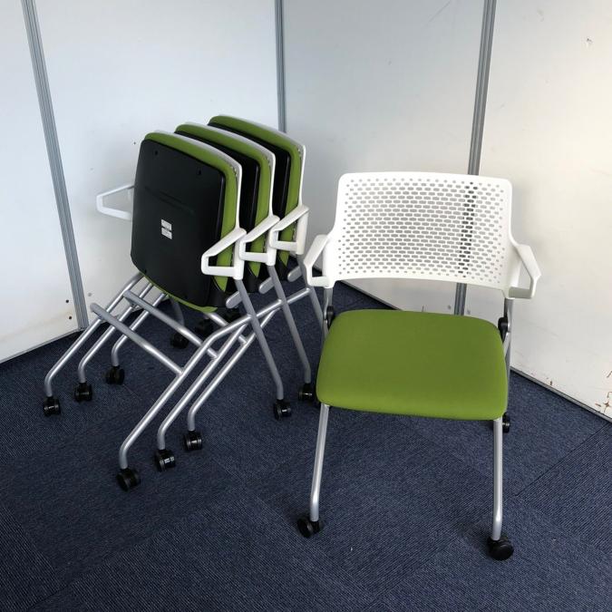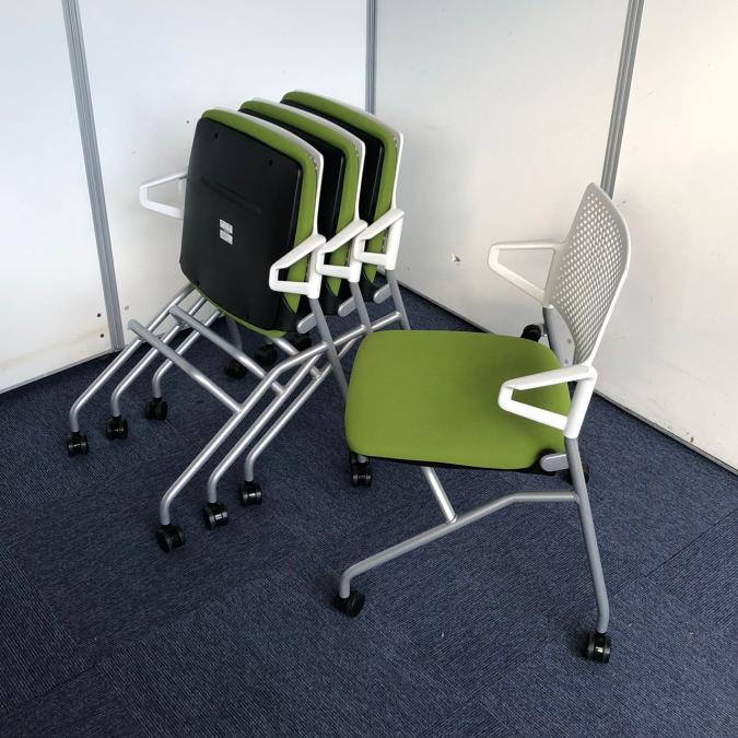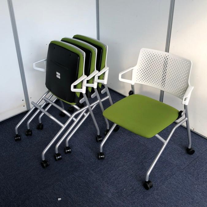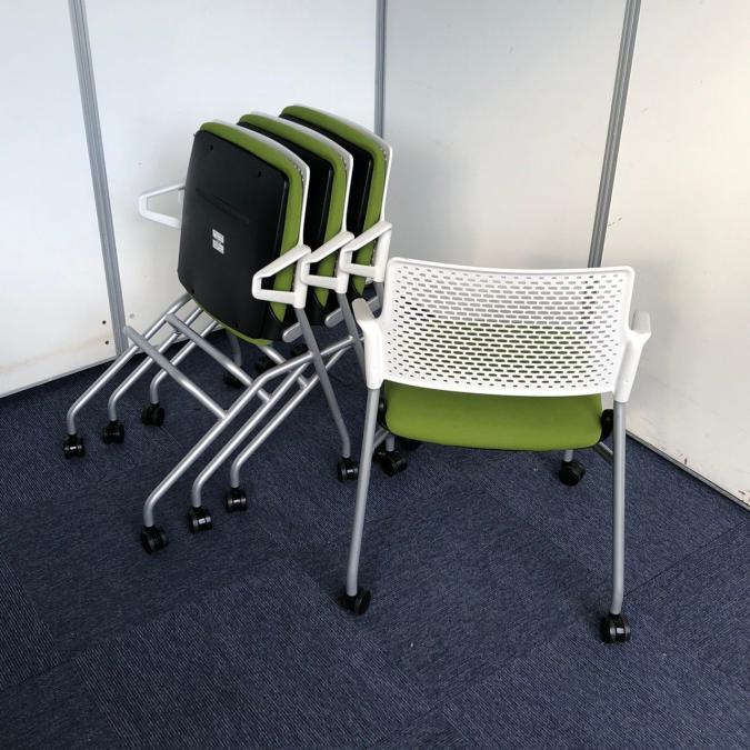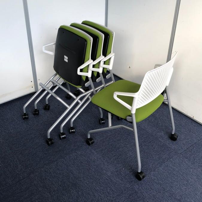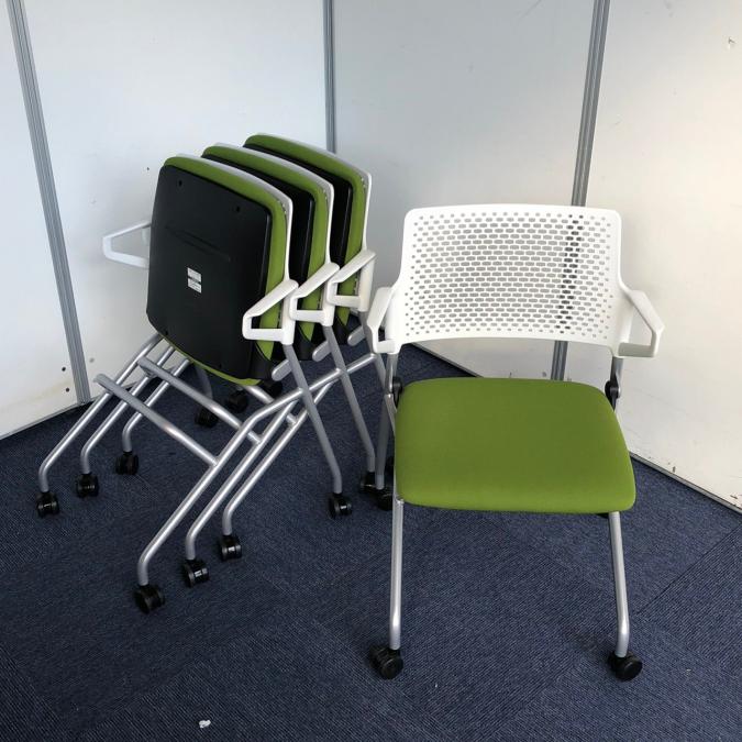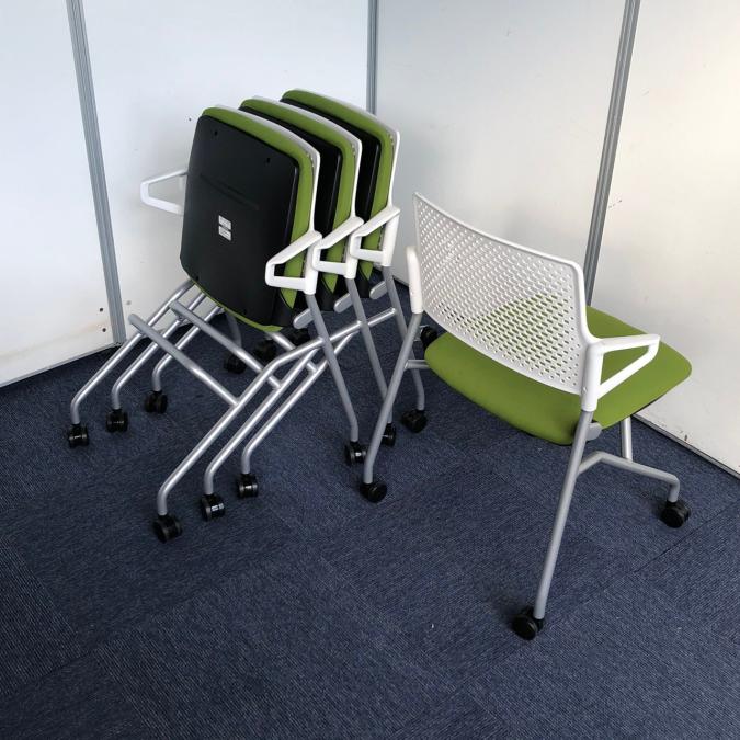 【4脚セット】ライトグリーンの色鮮やかなミーティングチェア。【3セットご案内可能】|折りたたみ椅子|会議椅子- 大阪梅田本店