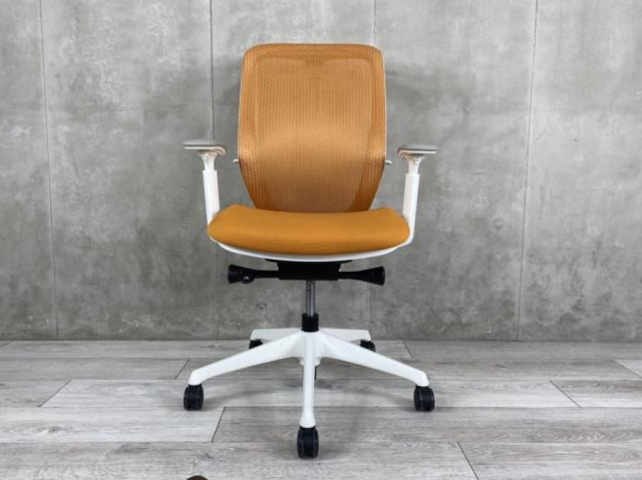 前傾機能チェアの代名詞!大人気シルフィーチェアが入荷!【華やかなアクセントカラーでオフィスを明るく!】■オカムラ製 シルフィ(Sylphy)オレンジ メッシュ背面 ■ハイバック ■可動肘付き コートハンガー付きサーキュラーバリューCO2削減量の算出について