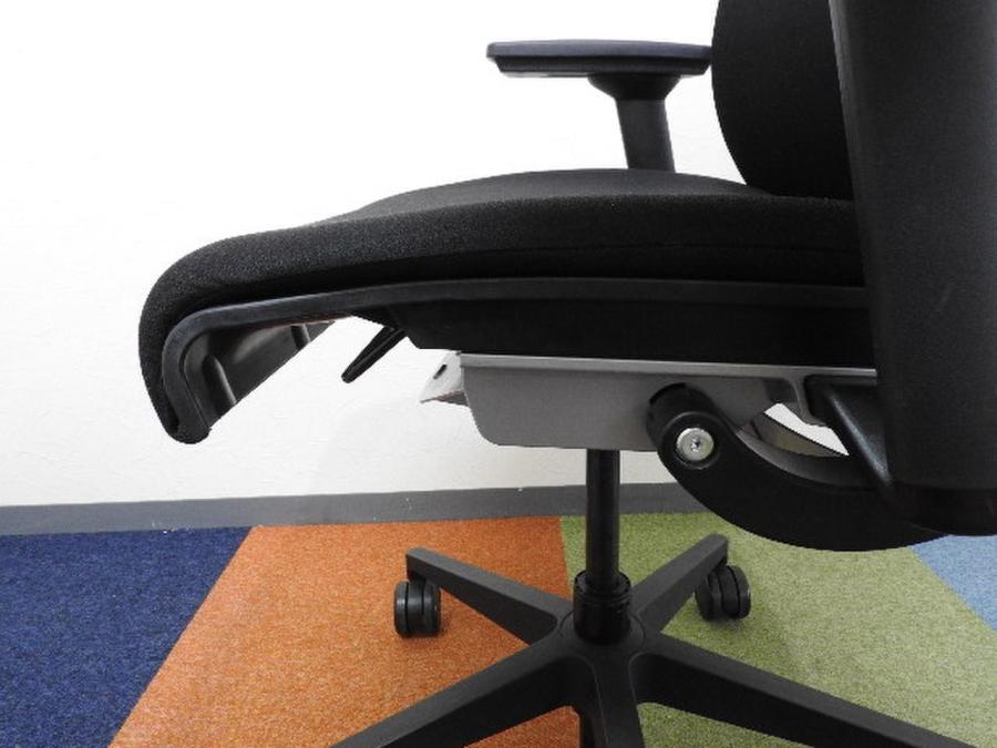 快適な座り心地に不可欠な調節機能である、上下昇降、座面の奥行き調整、リクライニングなどを備えており、操作もわかりやすく好評です。 特に、座面の奥行きは、座面下の左右に通った細いバーで調整でき、座ったままで軽やかに滑るように調整が可能です。 価格面では、新品では高めですが、中古は流通も多く、定価の3割前後の価格で高級チェアの座り心地を手に入れることができます!