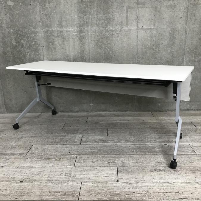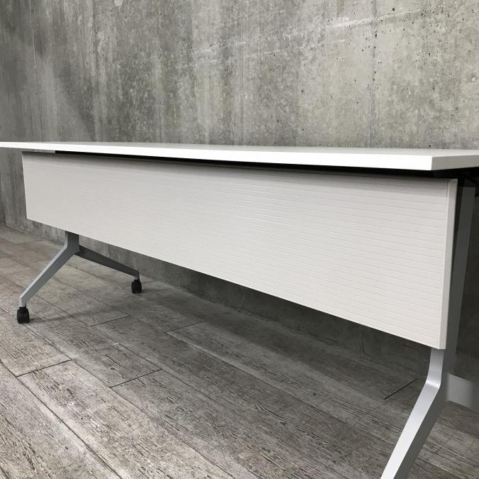 【定価約7万円】コンパクトな幅800㎜サイズのスタッキングテーブル! ■内田洋行/パラグラフ/ホワイト フラップテーブル 天板跳ね上げ 幕板付き