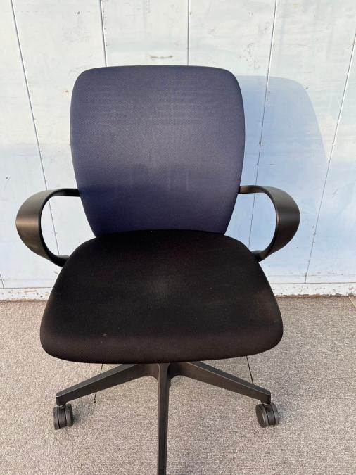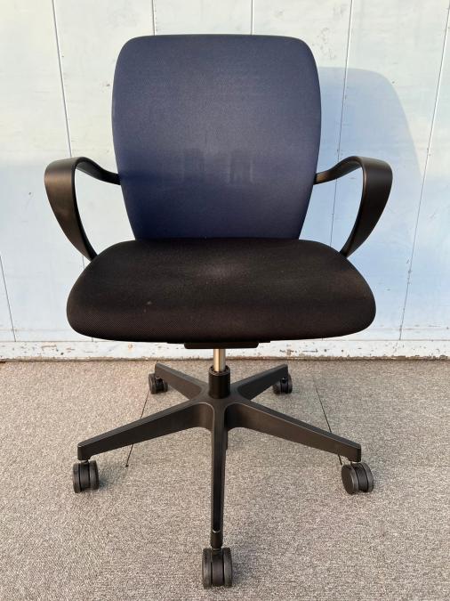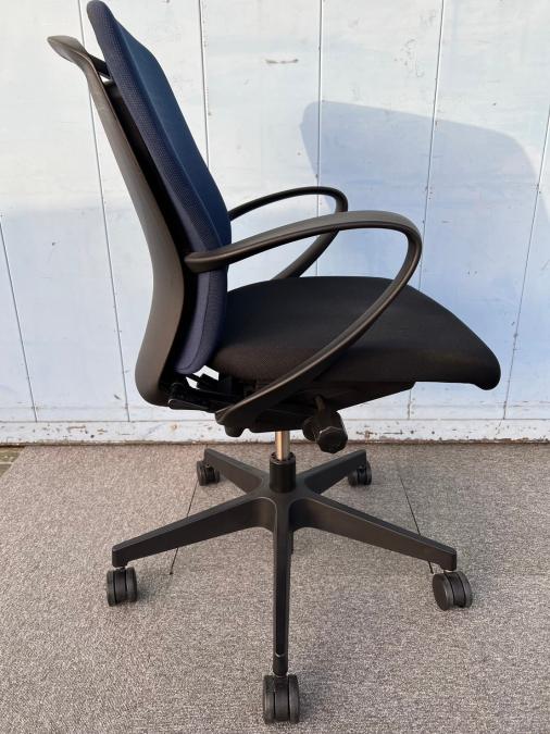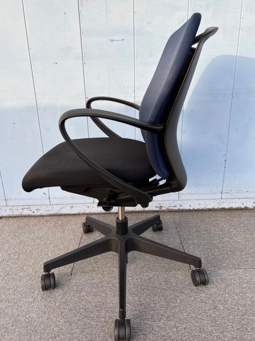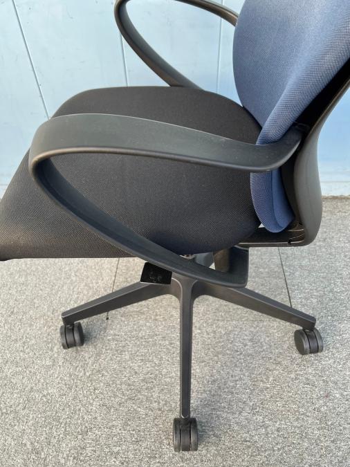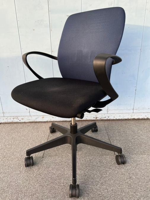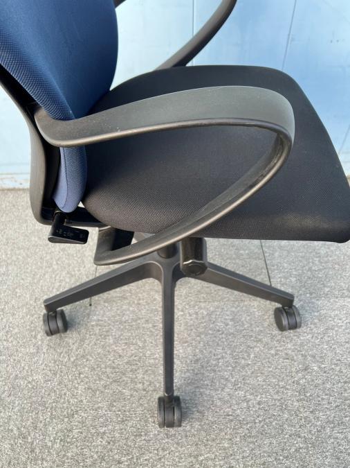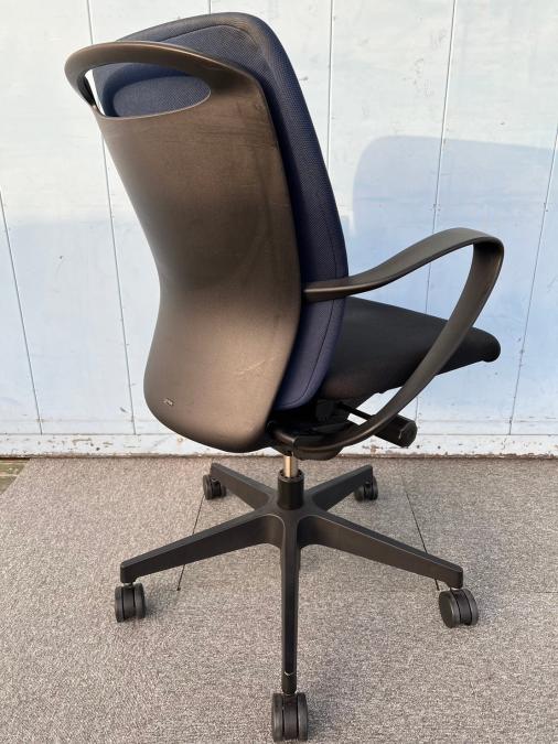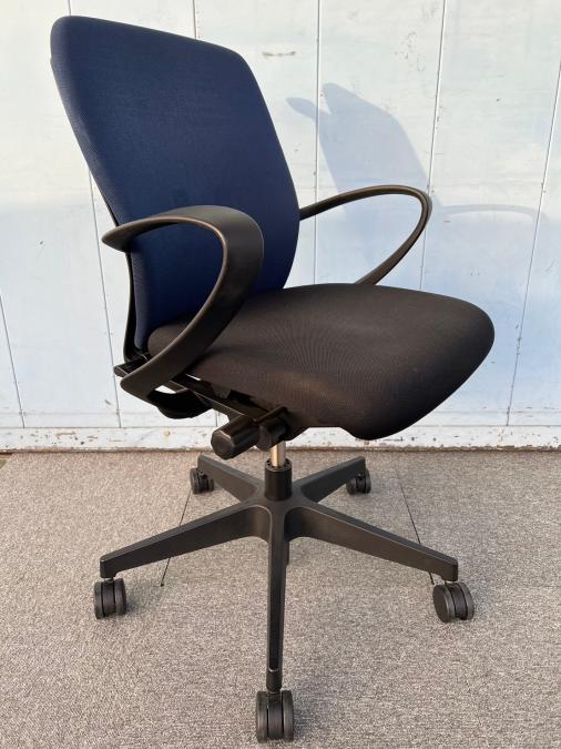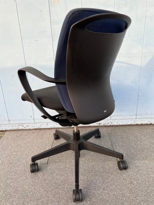 【背もたれ・座面使用感のすれあり】イトーキ製 人気高いフルゴシリーズ ブラック×ネイビーブルー 肘付きローバックチェア!!【関西倉庫在庫】