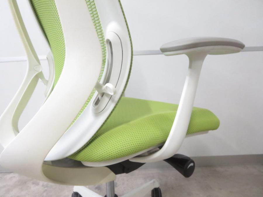 【ワーカーを支える機能を多数持つ人気チェア!優しい座り込みで姿勢も安定!】■オカムラ製 シルフィー 肘付ハイバックチェア 背面メッシュ ■可動肘 ■座面:ライムグリーン 脚:ホワイト オフィスバスターズ 東大阪店 2脚限定!