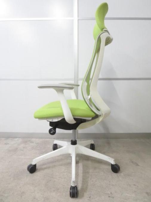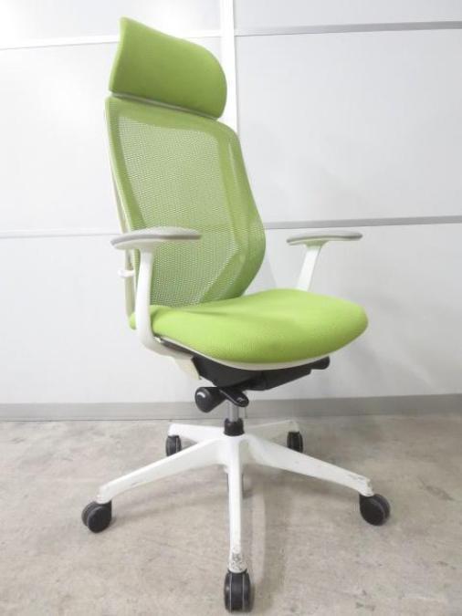 前傾機能付きでクッション性も良い充実の座り心地!新定番の高性能チェア! ■オカムラ/シルフィーメッシュ/ライムグリーン ■人気のヘッドレスト付!エクストラハイバック仕様!デザインアーム- 足立・葛飾店