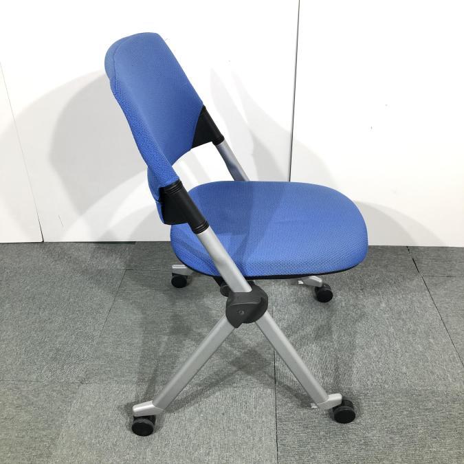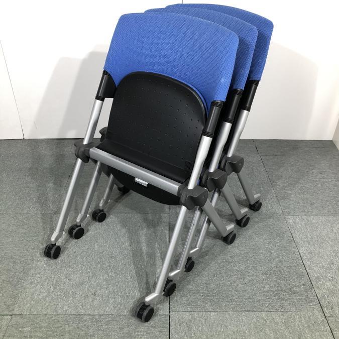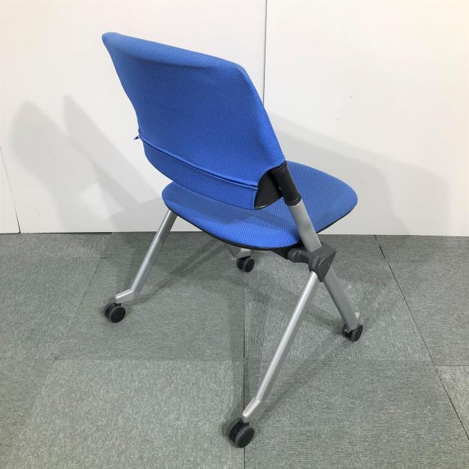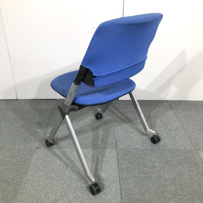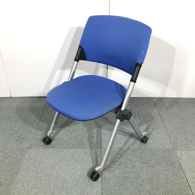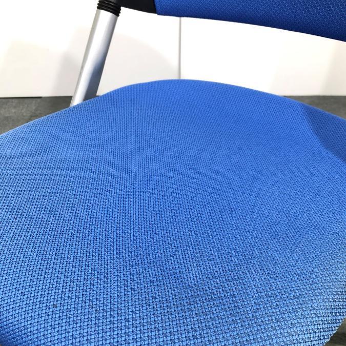 【関西倉庫在庫】※キャスター部劣化あり 定番ミーティング用チェア オカムラ製 リータシリーズ ブルー ネスティングチェア 弊社使用欄【A00925943】- 全店共通商品