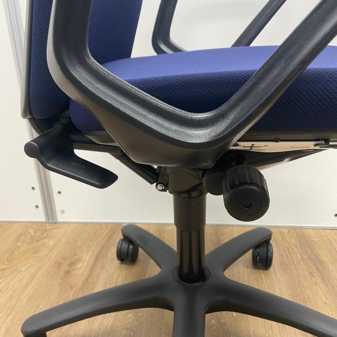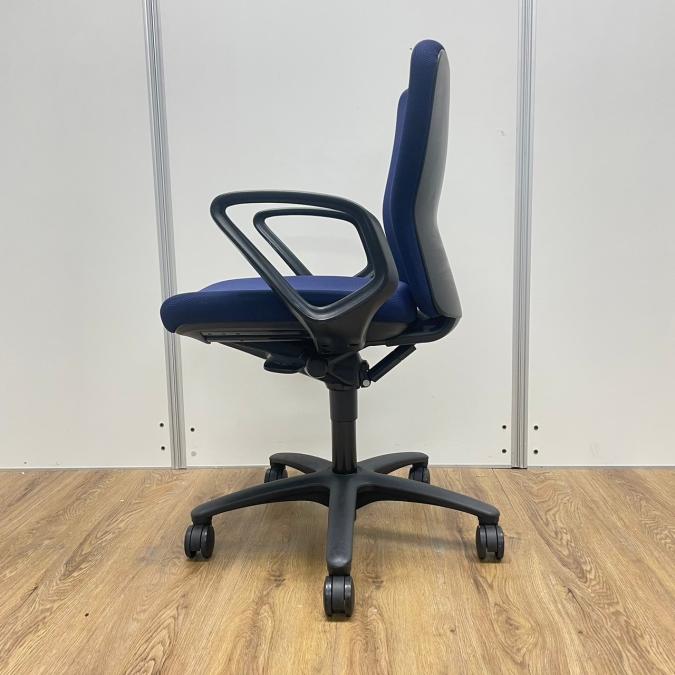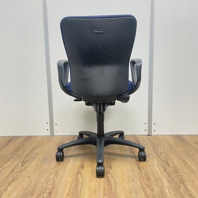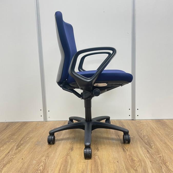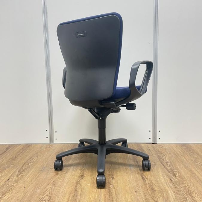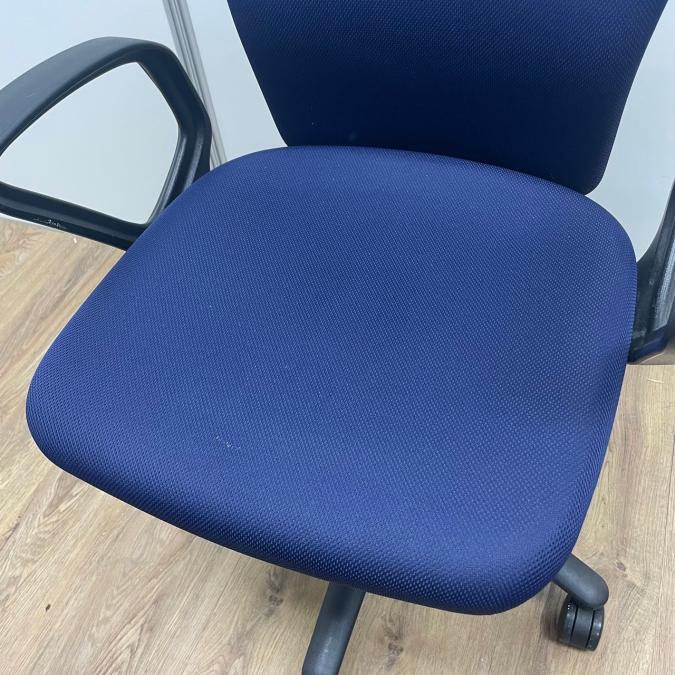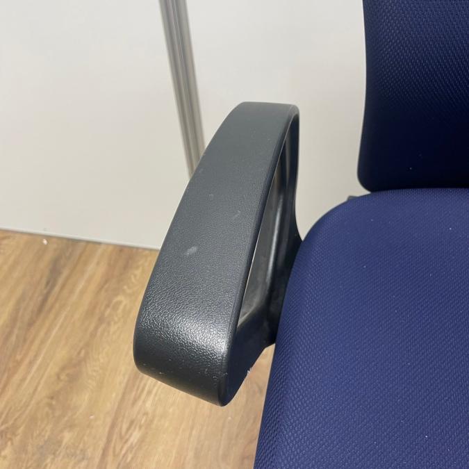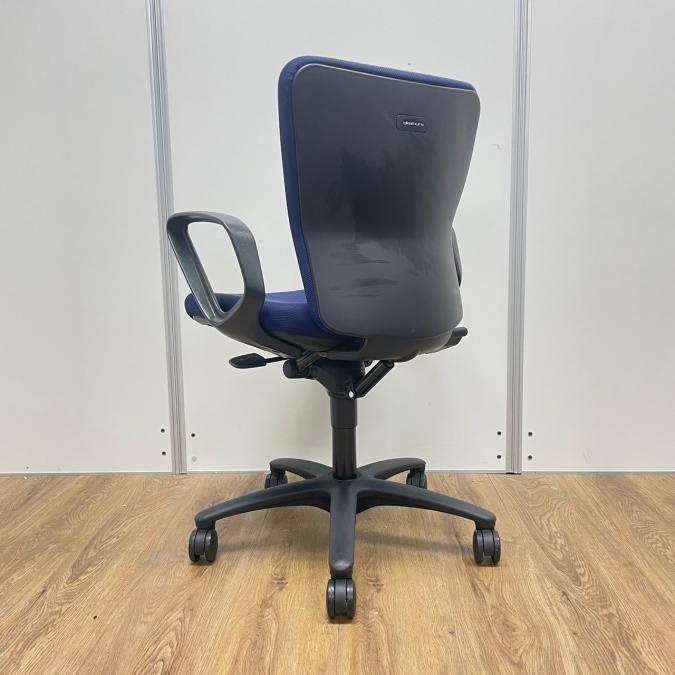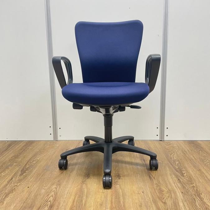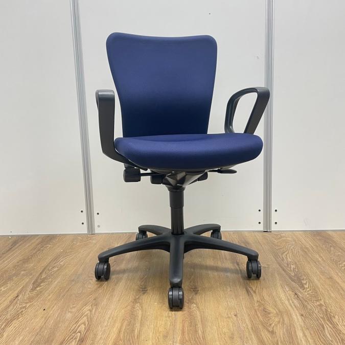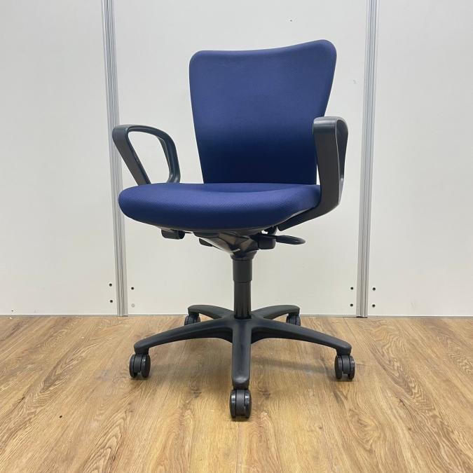 【商品入替のため、在庫限り】オカムラ製 定番カロッツァシリーズ ダークブルー サークル肘※固定肘 肘付きローバックチェア!!- 京都東寺店