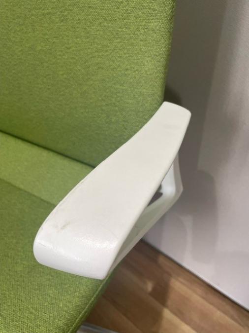 - あり黄ばみ・変色が広い範囲にうっすらある、または濃い黄ばみ・変色が一部ある。(例、座面・背もたれ、脚部等にある。)