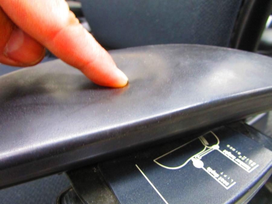 - あり黄ばみ・変色が広い範囲にうっすらある、または濃い黄ばみ・変色が一部ある。(例、座面・背もたれ、脚部等にある。)