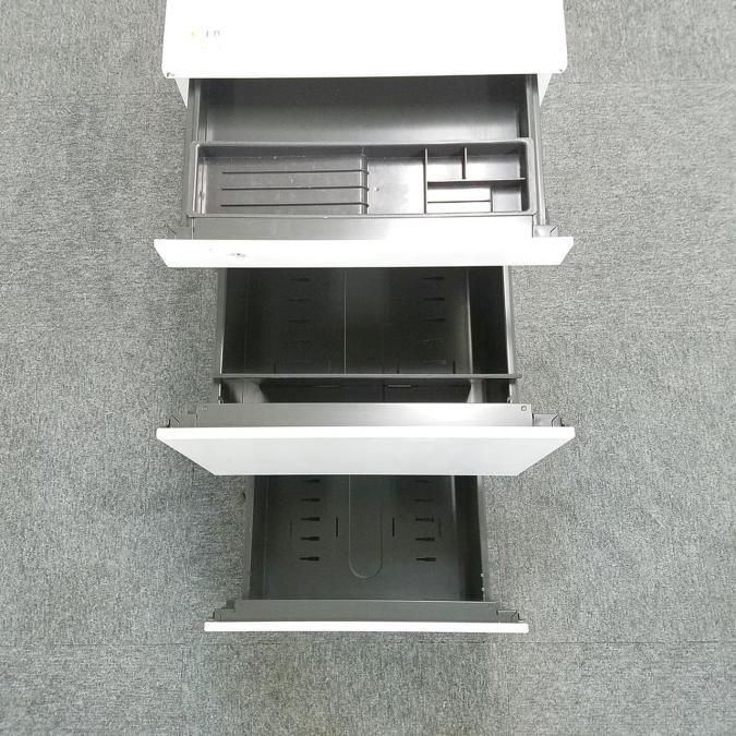 【正面に取っ手が無いフラットなデザイン!キャスター付でレイアウト変更がスムーズ!】■オカムラ(okamura)製 プロユニットシリーズ 3段ワゴン フリアド用ワゴン H650㎜ ■ホワイト ■シリンダー錠 ※キズ・塗装剝がれ有【弊社使用欄:A01042240】