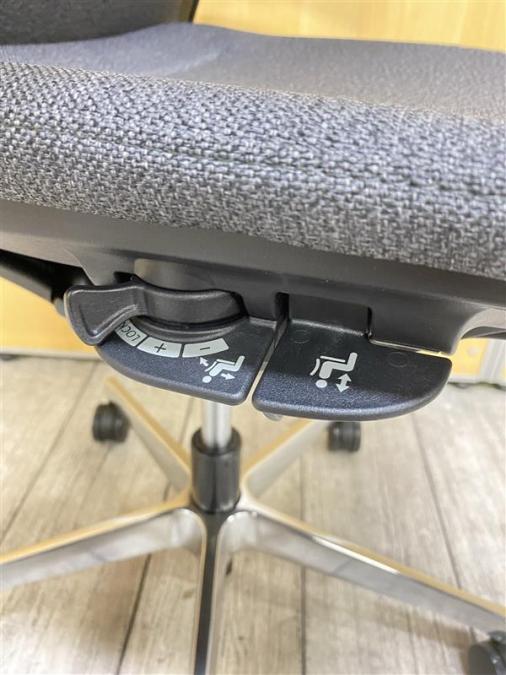 - 座面の高さ調節や背と座がシンクロしてスライドするアンクルチルトリクライニングなど、基本的な調節機能を搭載。