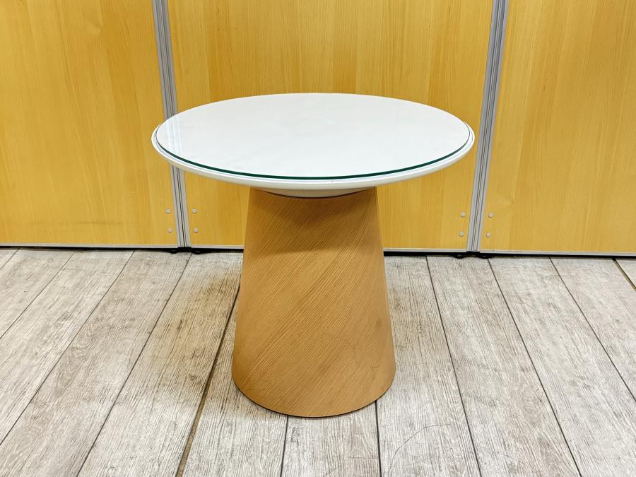 【海外メーカー】ガラス天板のスタイリッシュな丸テーブル スチールケース製- 神戸・三宮店
