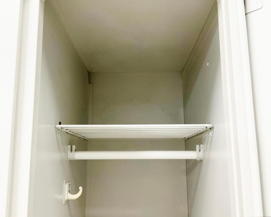 - 完備鏡、ネクタイ掛け、傘立て、網棚、フック等が全て完備されている。