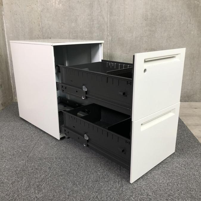 【まとめて揃います!!】A4ファイルをしっかり収納!デスク下の収納・書類管理に最適!キャスター付きワゴン ■オカムラ(okamura)アドバンス ホワイト キャスター付き シリンダー錠- なんば日本橋店