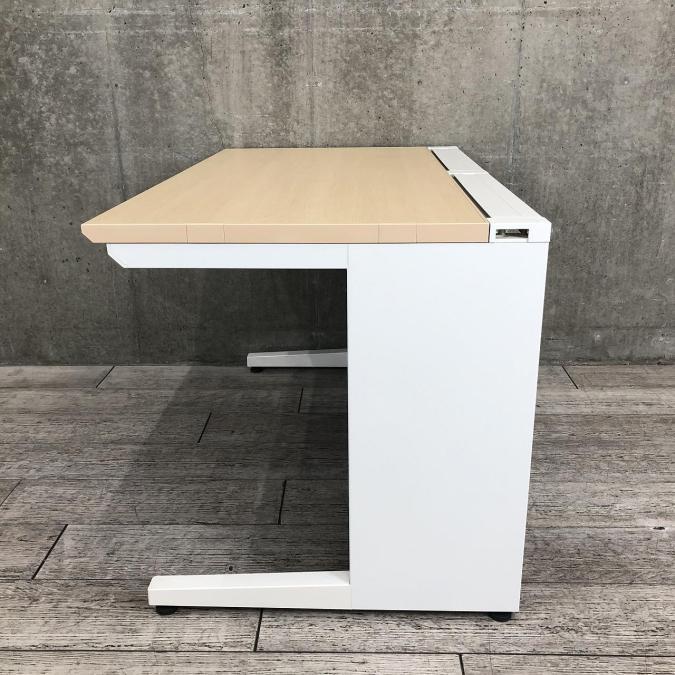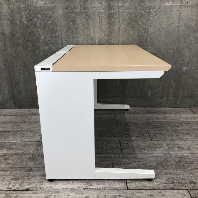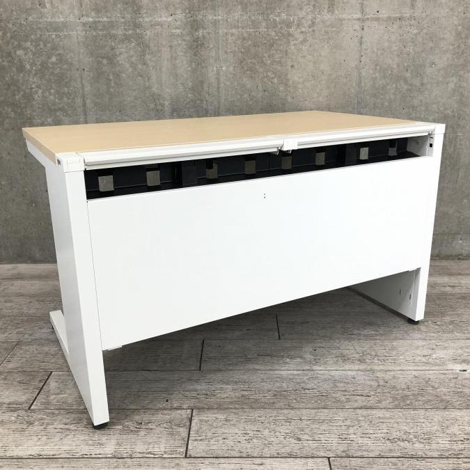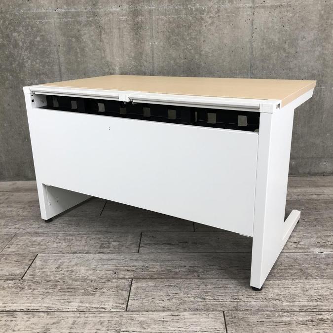 【在庫入れ替え】【配線すっきりの高品質デスク!作業スペースは人気の幅1200㎜!】■コクヨ(KOKUYO)製 アイエス(iS)シリーズ 平机 引き出し付き W1200㎜ ■本体ホワイト 天板:木目ナチュラル