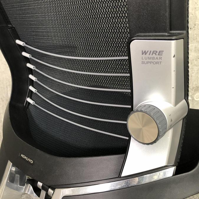 背面部分に付属しているランバーサポートは、6本のワイヤーで構成されており
