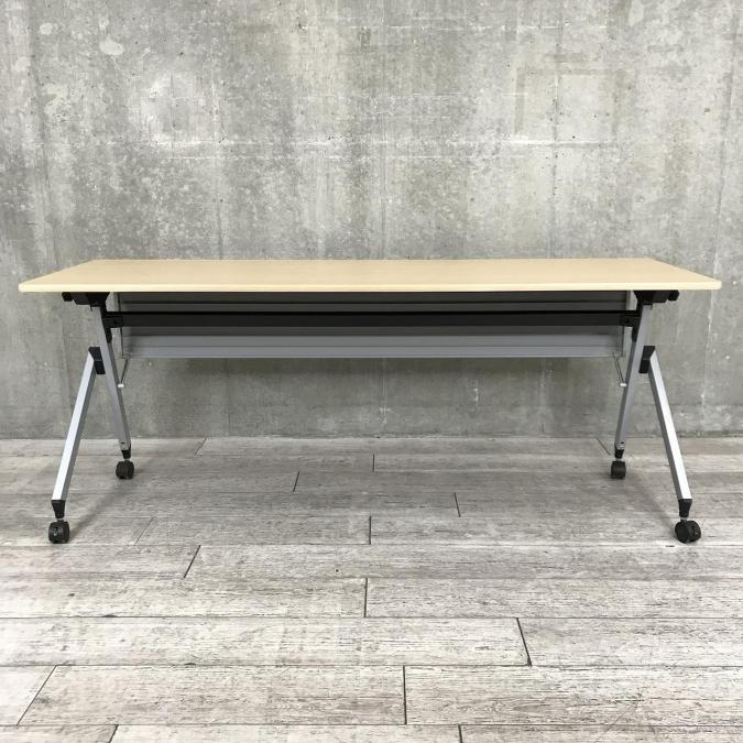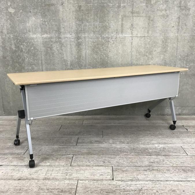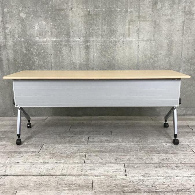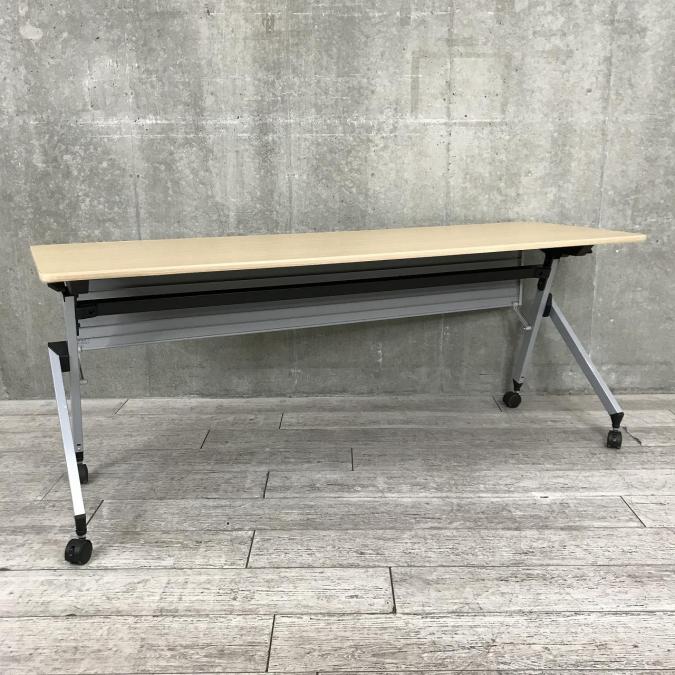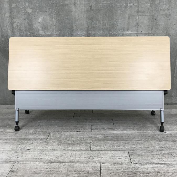 【2~3名様で使えるスタックテーブル入荷!キャスター付きで移動も楽々!】■ITOKI(イトーキ)製 サイドスタックテーブル ■幅1800×奥行600 ■幕板付き ■ナチュラル【天板跳ね上げ式でコンパクトに収納】- 春日部・越谷店