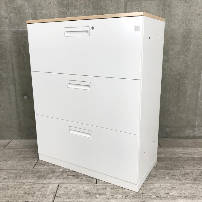 【入替特価】【ナチュラル天板付き!】清潔感のあるホワイト書庫 ■KOKUYO(コクヨ)エディア(EDIA)ローキャビネット 3段ラテラル書庫 ■ホワイト【G2】- 春日部・越谷店