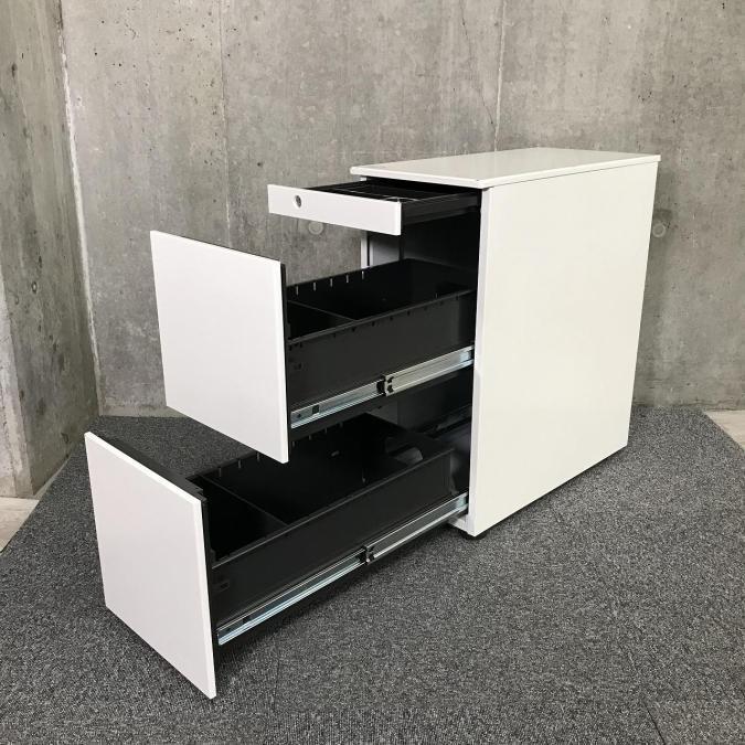 【※幅290㎜!!スリム!!】入荷の珍しいレア商品!スリムタイプの3段ワゴンが入荷!省スペースで収納を増やしたい方に ■オカムラ(okamura) 3段ワゴン ■ホワイト ■高さ650㎜- 池袋店