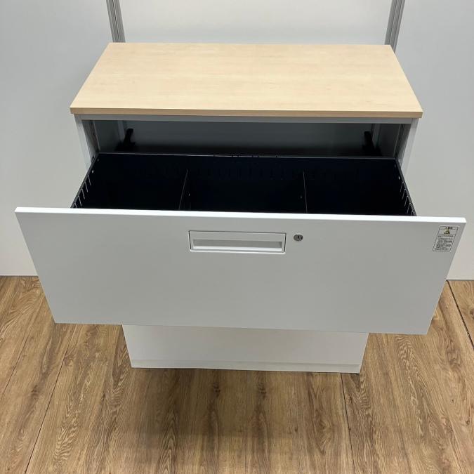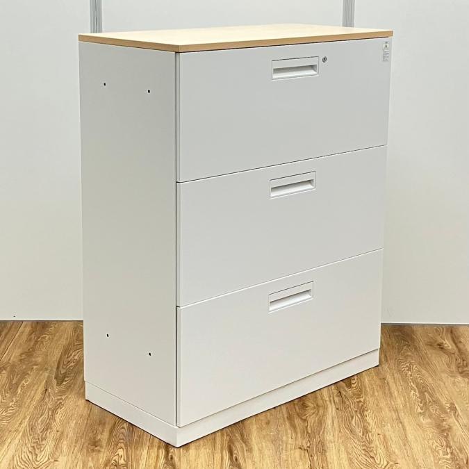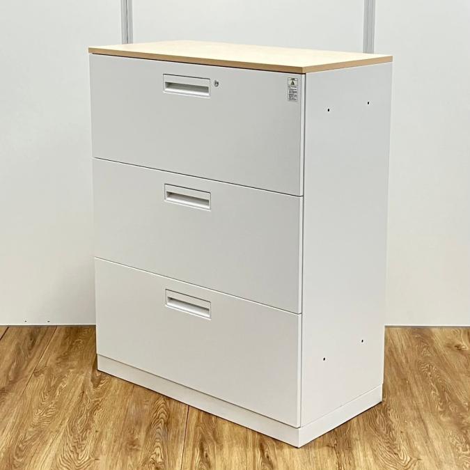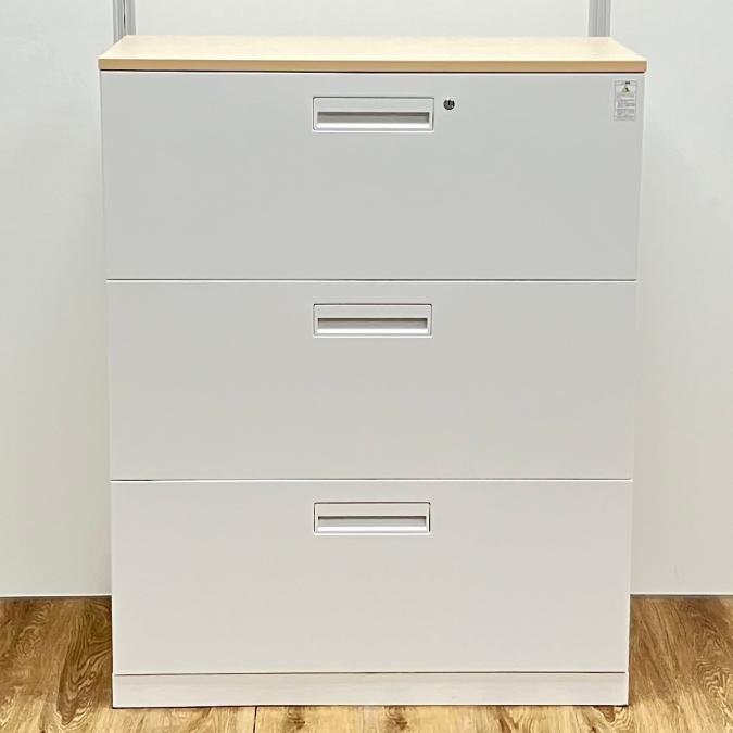 【商品入替のため、残り2台限り】コクヨ製 エディアシリーズ ホワイト ナチュラル天板 清潔感のあるホワイト書庫 オフィスの定番収納キャビネット 3段ラテラル書庫!!- 京都東寺店