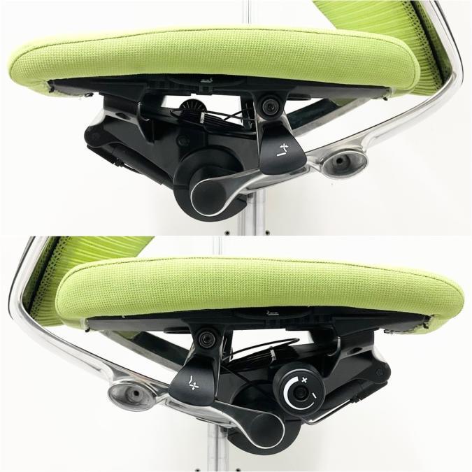 もちろん座り心地もコンテッサの直系ですから快適です。座面の素材はクッションとメッシュの2タイプあります。私、個人的には座面の中心部分でも外側でもテンションが変わらないクッション素材が、足を閉じても開いても快適なので推しです!"