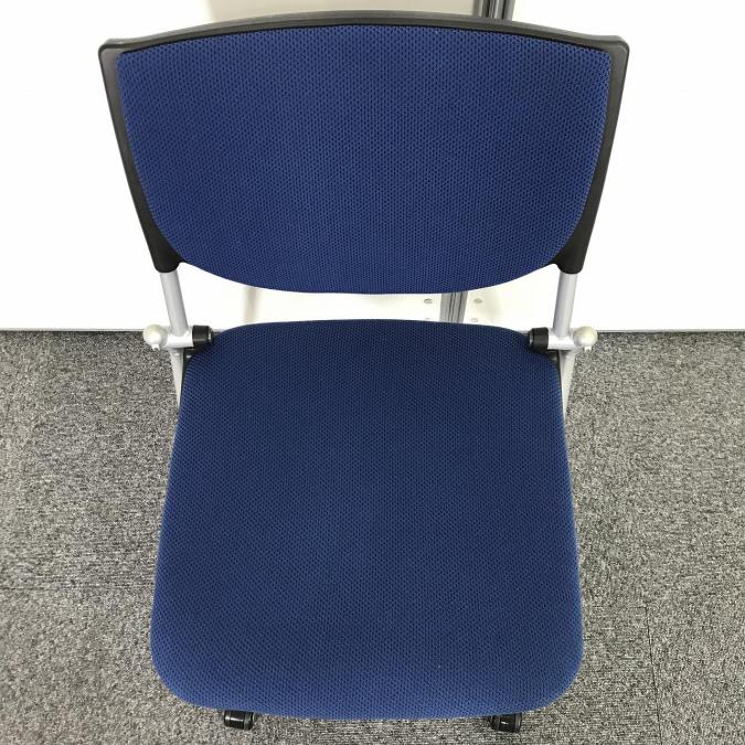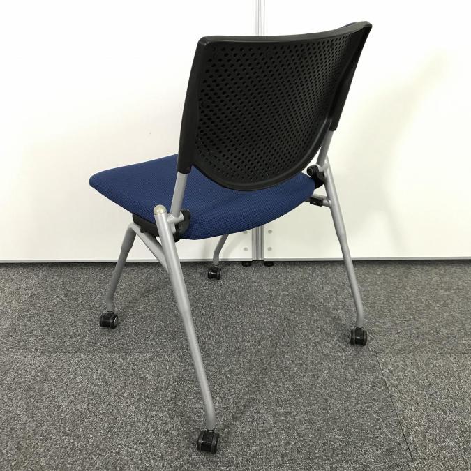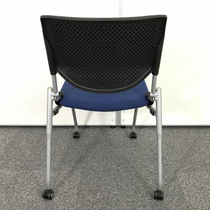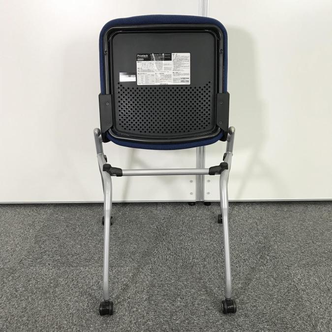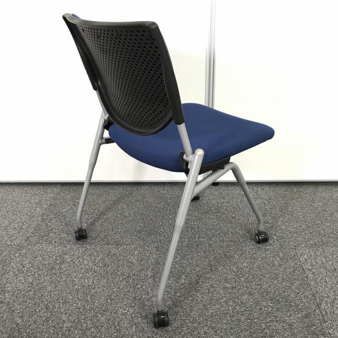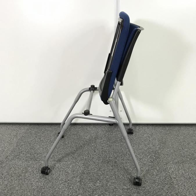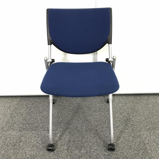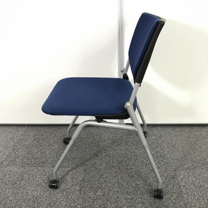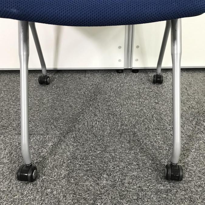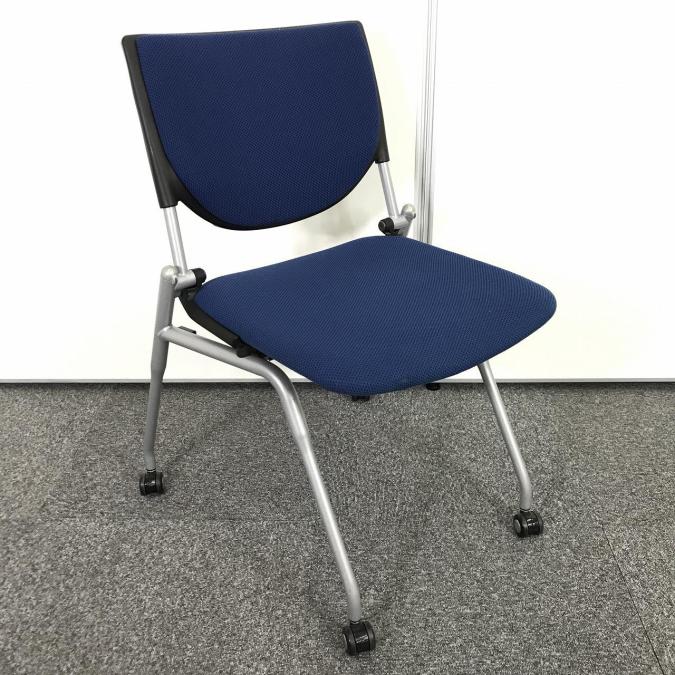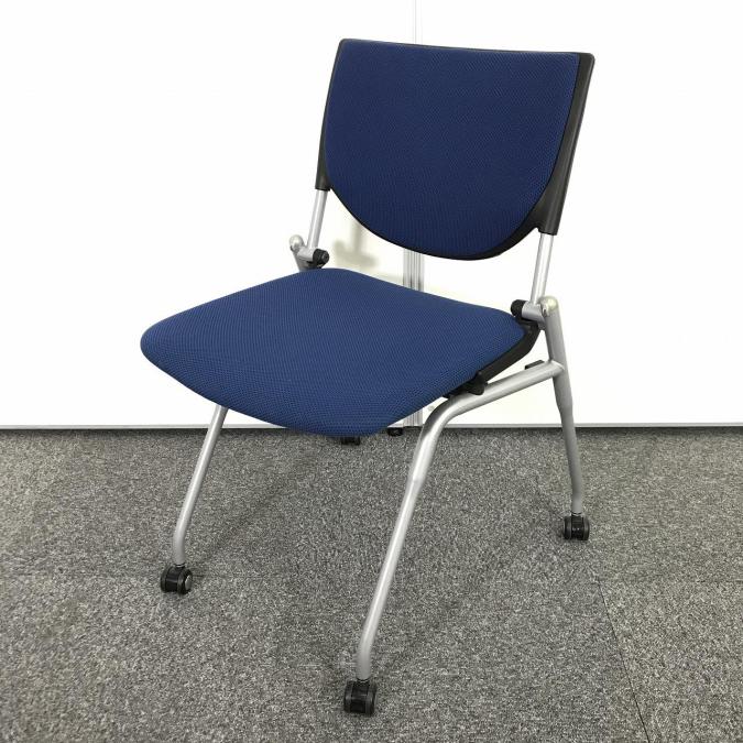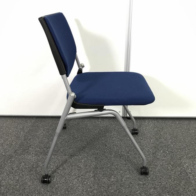 【会議室にピッタリ!コンパクト設計で収納がしやすい!】■オカムラ プロスタックシリーズ ネスティングチェア ミディアムブルー ■フレキシブルに使えるキャスター付!【在庫入替セール品!(本在庫限定価格)】