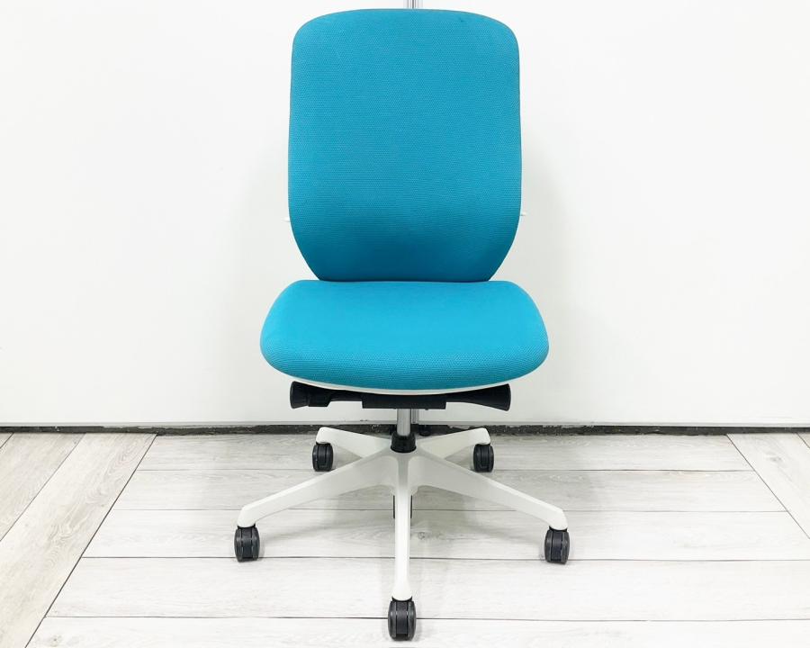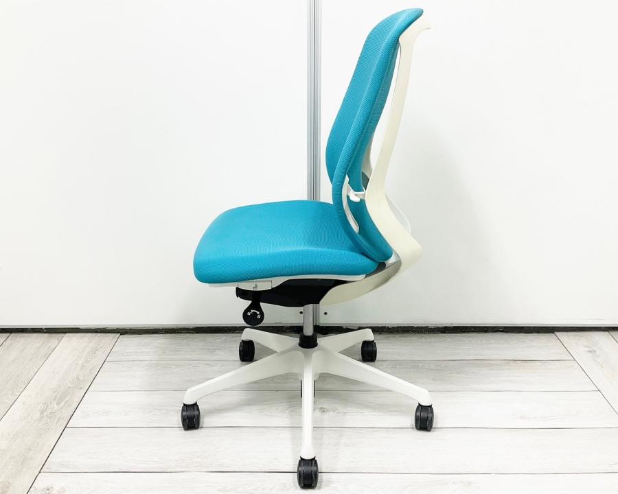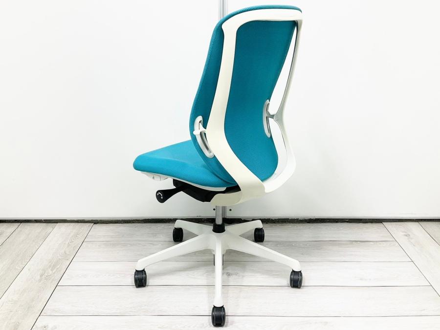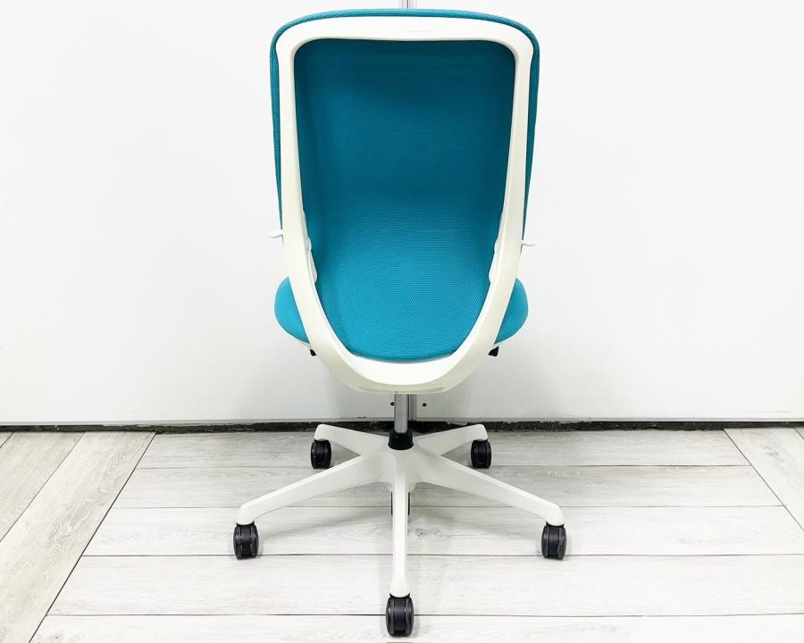 【背のカーブを変えられる! 新感覚のオフィスシーティング!】■オカムラ(okamura)製 シルフィーチェア ■肘無し ■ブルーグリーン×ブラックシェル ※上下昇降ガス圧弱めの商品となります。