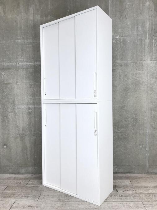 スペースを圧迫しない引違い扉タイプの書庫セットが入荷!3枚扉で開閉しやすい! ■コクヨ/エディア/ホワイト 上下3枚引戸書庫セット W900×D400×H2100mmサーキュラーバリューCO2削減量の算出について