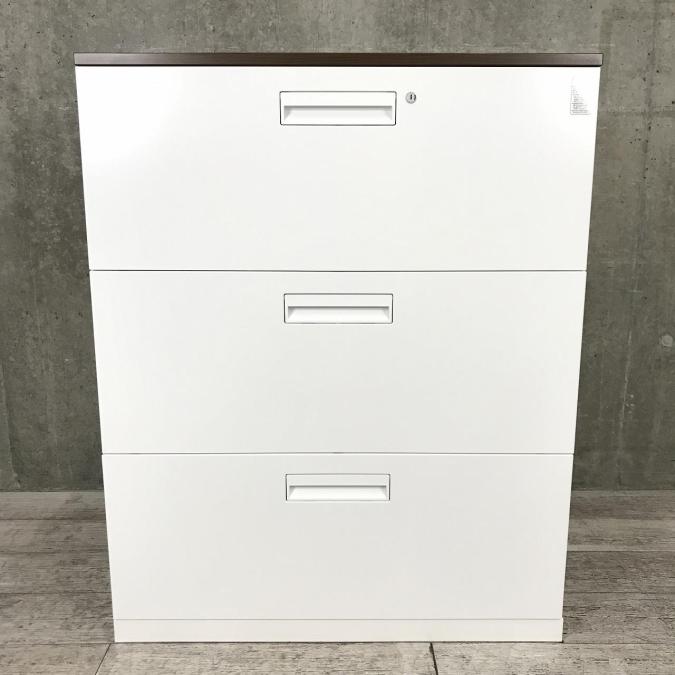 【2020年製】【収納力抜群の3段ラテラル書庫!A4書類が大量に収納可能!】■コクヨ(KOKUYO)製 エディア(EDIA)シリーズ 3段ラテラル ローキャビネット H1130㎜ ■天板・ベース付き ■ホワイト ■シリンダー錠【2511】弊社使用欄【A01044970】