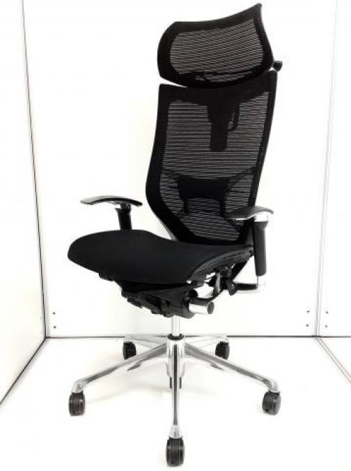 【ワンランク上の座り心地を実現!】■オカムラ製 バロンチェア 可動肘 ヘッドレスト付 ハンガー付 ブラック 【訳あり】※座面メッシュに弛みがあるためお安く!- 川崎店