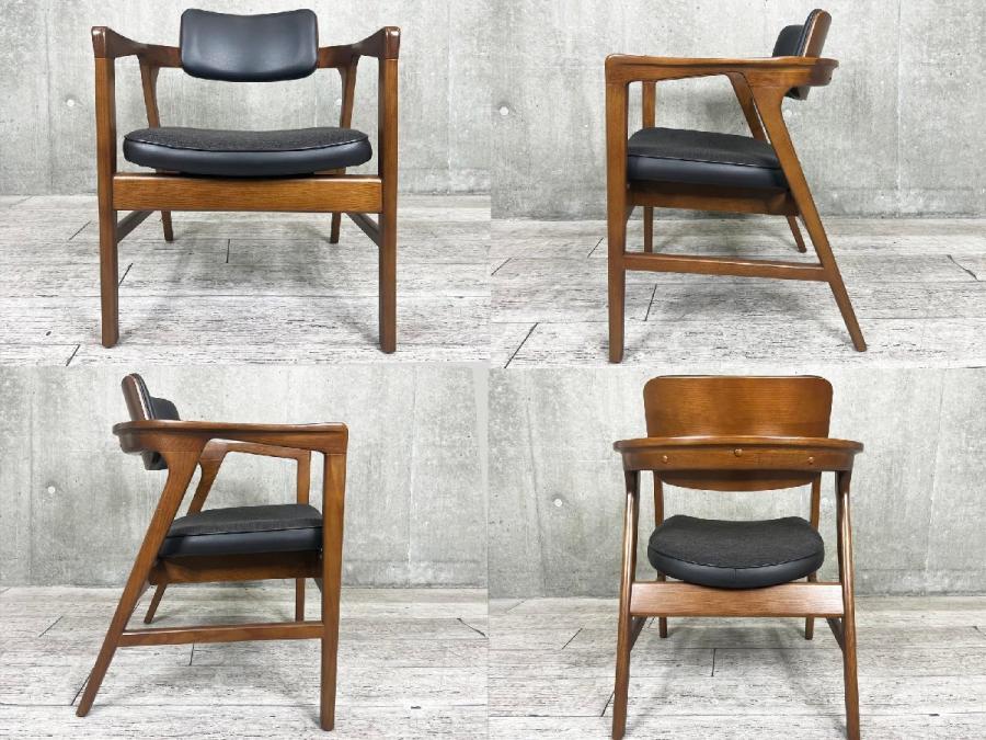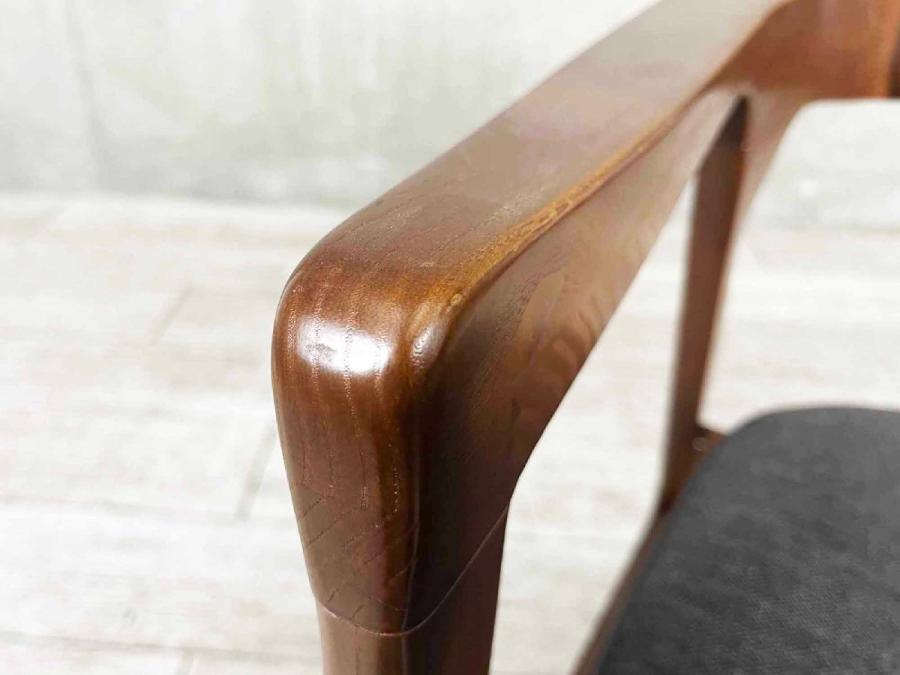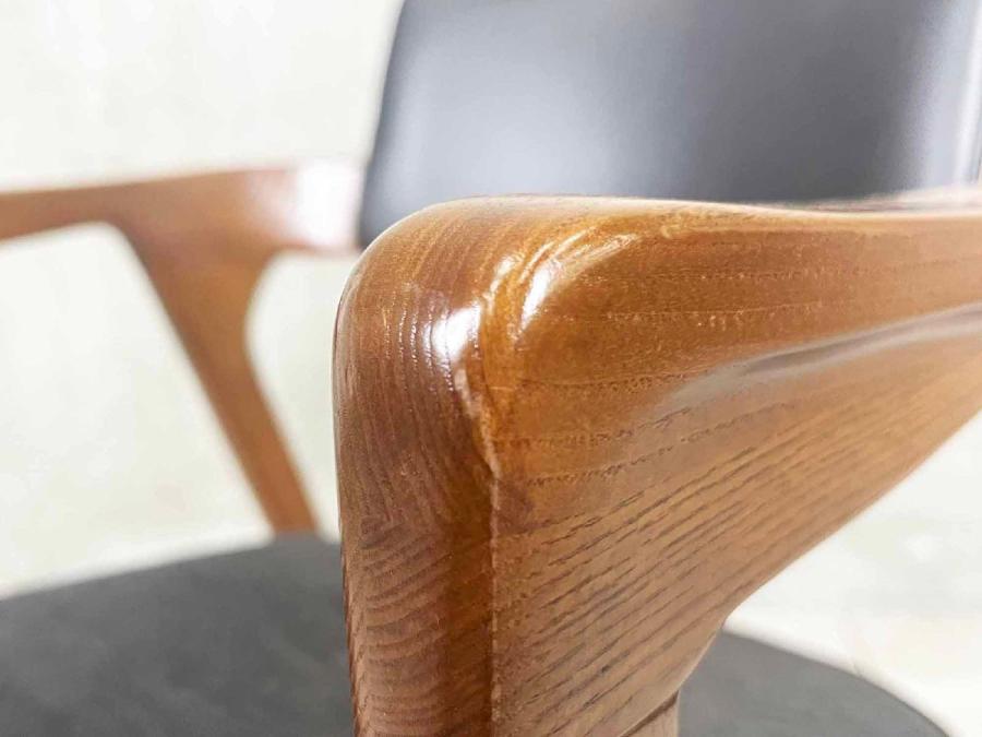 緩やかな曲線を描くアームや流れる脚部は、背面から見る機会の多いダイニングチェアを想定して、どの角度から見ても美しく見えるように設計されています。ミッドセンチュリーモダンの雰囲気を醸し出すデザインです。