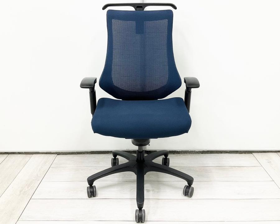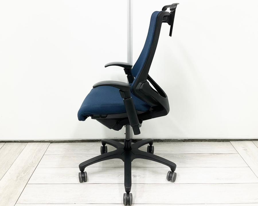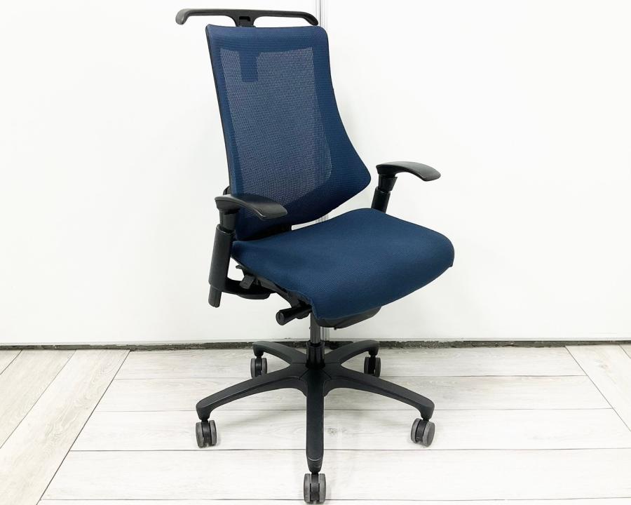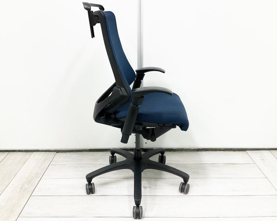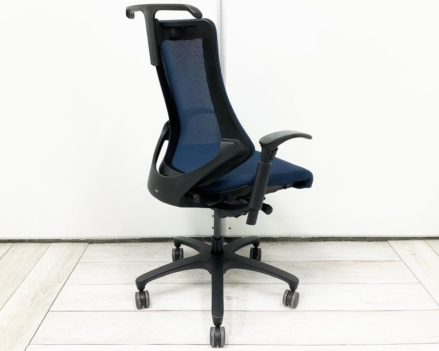 【最先端のデザインに快適な座り心地!】■イトーキ製 エフチェア 可動肘付 ネイビーブルー ■三次元フォルムが腰にフィット!【在庫入替セール品(本在庫限定価格)】