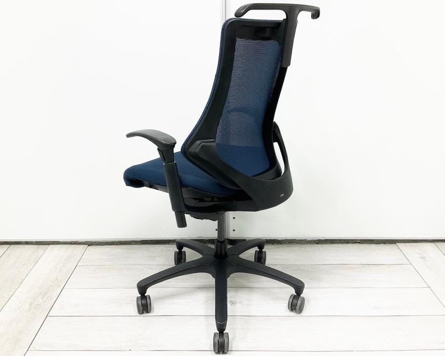 【姿勢の変化にフレキシブルに対応!スタイリッシュで座り心地も抜群な高機能チェア!】■イトーキ(ITOKI)製 エフ(f)チェア 肘付き ハイバック 背面メッシュ ■可動肘 ■ネイビーブルー ×ブラックシェル