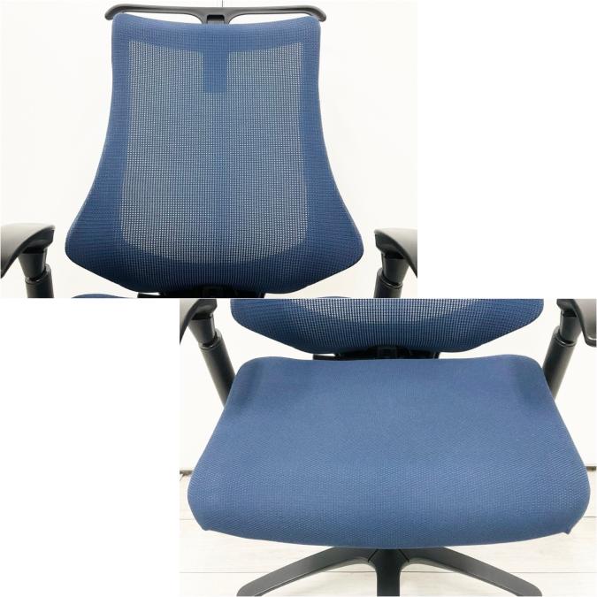 【姿勢の変化にフレキシブルに対応!スタイリッシュで座り心地も抜群な高機能チェア!】■イトーキ(ITOKI)製 エフ(f)チェア 肘付き ハイバック 背面メッシュ ■可動肘 ■ネイビーブルー ×ブラックシェル【2510】弊社使用欄【A01040263】