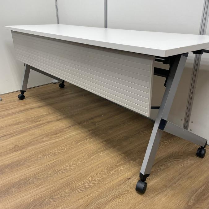 使い勝手抜群!天板を跳ね上げて収納ができるスタックテーブルが入荷!幕板付きで安心! ◆内田洋行/プラッテ(Platte)/ホワイト 横幅1500mm(奥行450mm)フラップテーブル