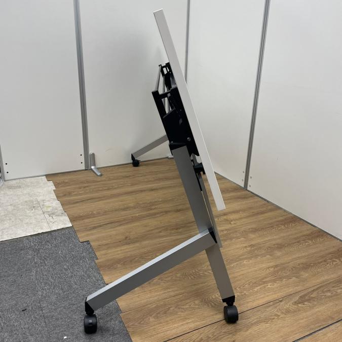 【折りたたみ収納が秀逸!スタイリッシュなデザインで高品質!】■ウチダ(UCHIDA)製 プラッテ(PLATTE)シリーズ サイドスタックテーブル W1500×D450㎜ ■キャスター付 ■ホワイト