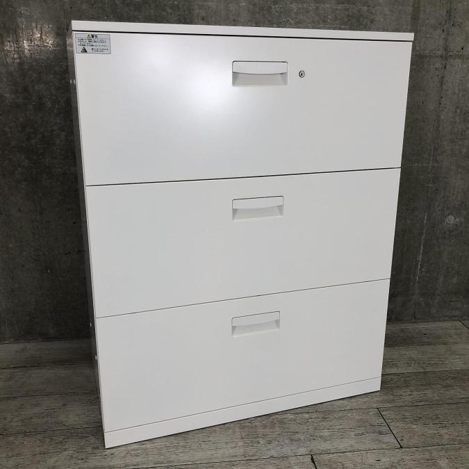【在庫入替セール品】【オフィスの必需品!】使いやすいシンプルデザインのホワイト書庫が入荷 クロガネ製 3段ラテラル書庫 天板付き- 千葉店
