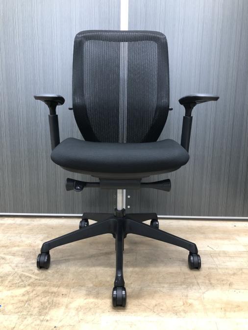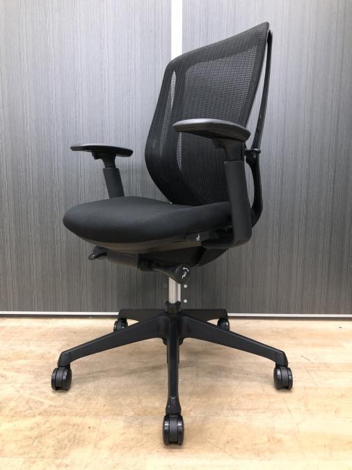 【限定1脚】【三次元曲面が身体にフィット!前傾チルト機能付き大人気メッシュチェア!】■オカムラ(okamura)製 シルフィーチェア(Sylphy) 肘付きハイバック ■背面メッシュ ■可動肘 ■ブラック×ブラックシェル ■ランバーサポート付き