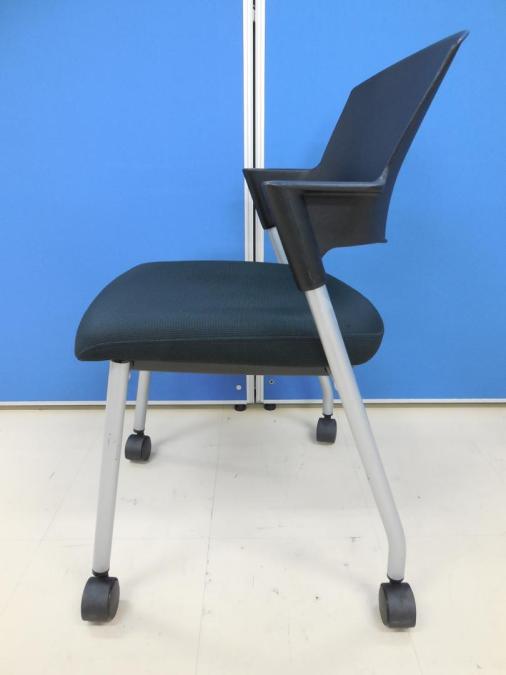 【6/16・8脚入荷予定!】【シンプルスマートなスタッキングチェア!分厚いクッションで長時間でも快適な座り心地!】■コクヨ製 プロッティ スタッキングチェア 肘付ミーティングチェア ■固定肘 ■キャスター付 ■ブラック ■背面樹脂 オフィスバスターズ梅田本店