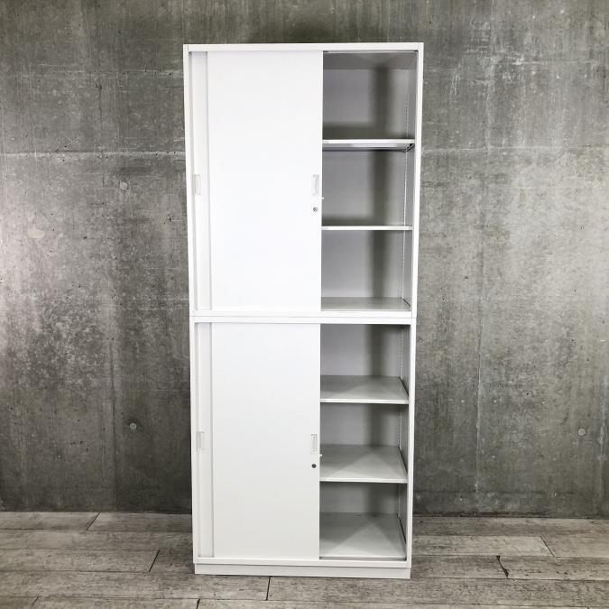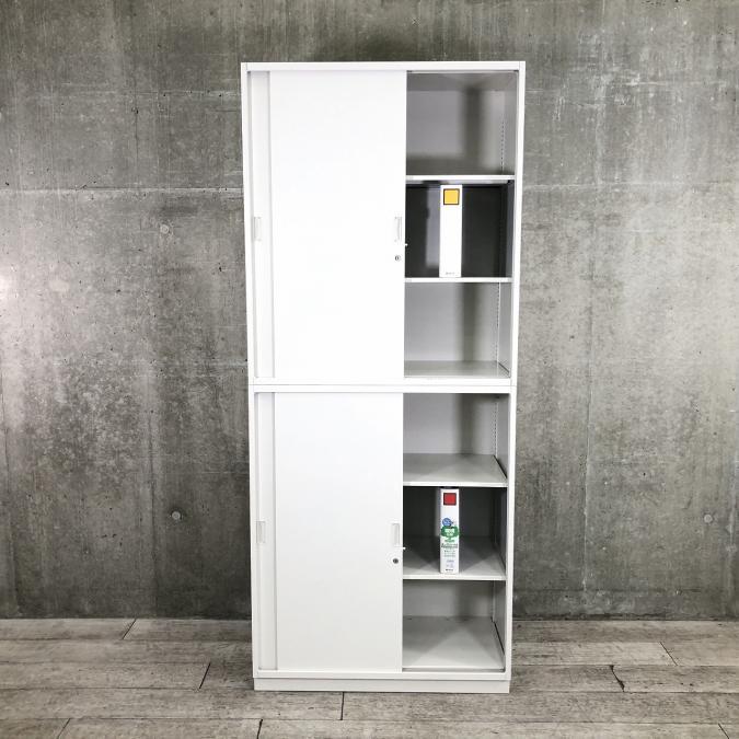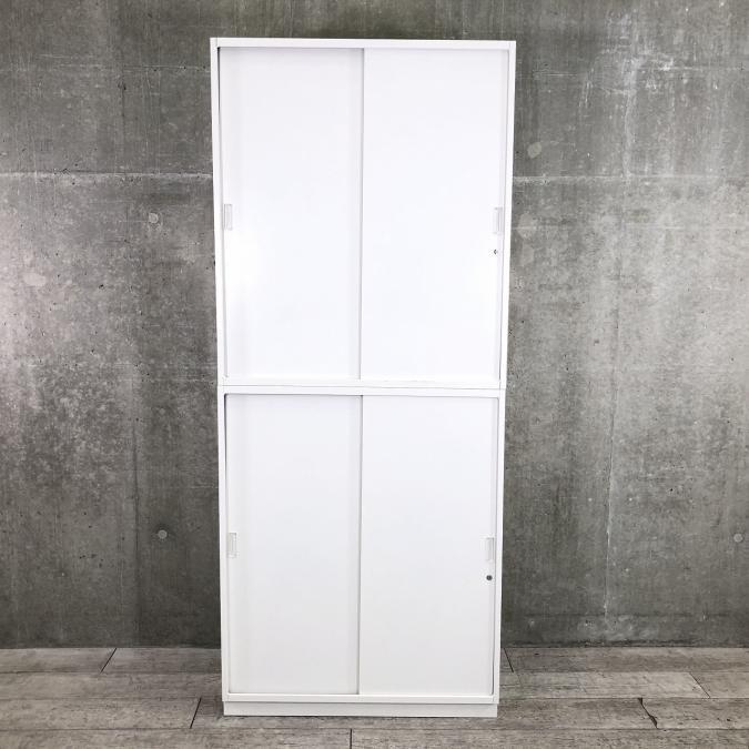 【1セットのみ】【人気の引き違いキャビネット※2枚引き戸】導線幅に適応しやすい書庫で狭小スペースにオススメ 色:ホワイト- 大阪梅田本店