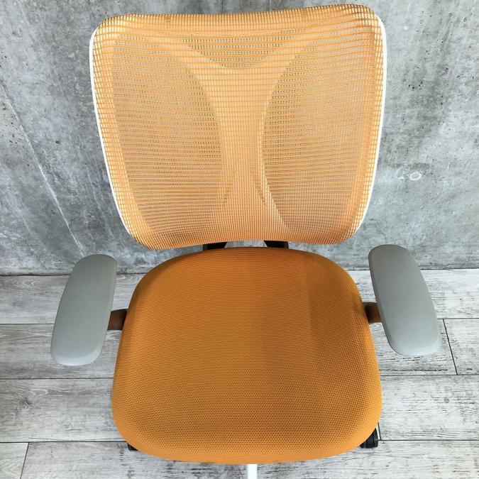 【4脚限定】【在庫入替特価】流れるような美しいフォルム!最高級メッシュチェア!オカムラ サブリナ 肘付 オレンジ メッシュ ハイバック 前傾チルト オフィス リモートワーク 在宅- 豊中・尼崎店